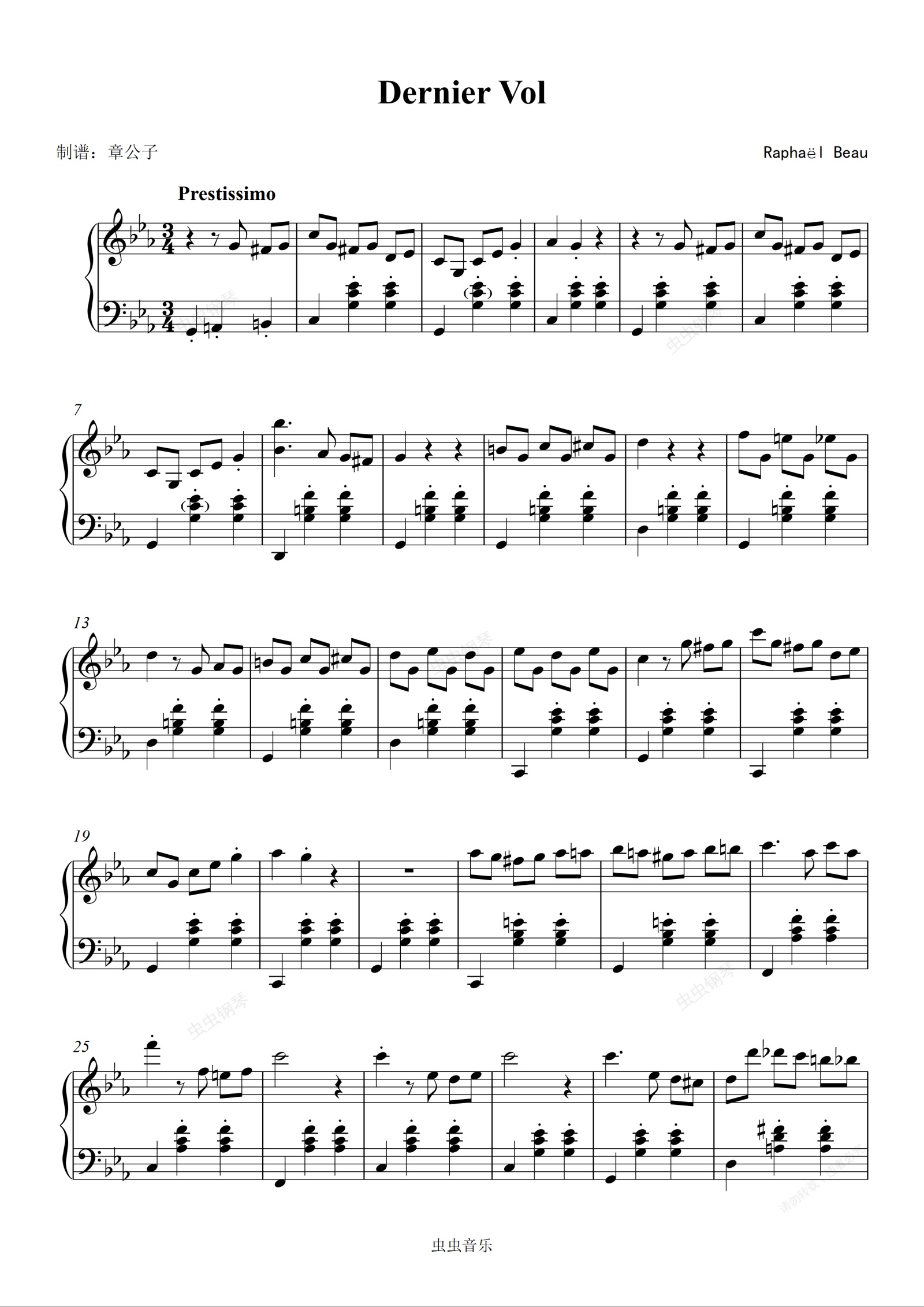 钢琴谱:Dernier Vol - Raphaël Beau 《尽情游戏》原声音乐独奏谱原调