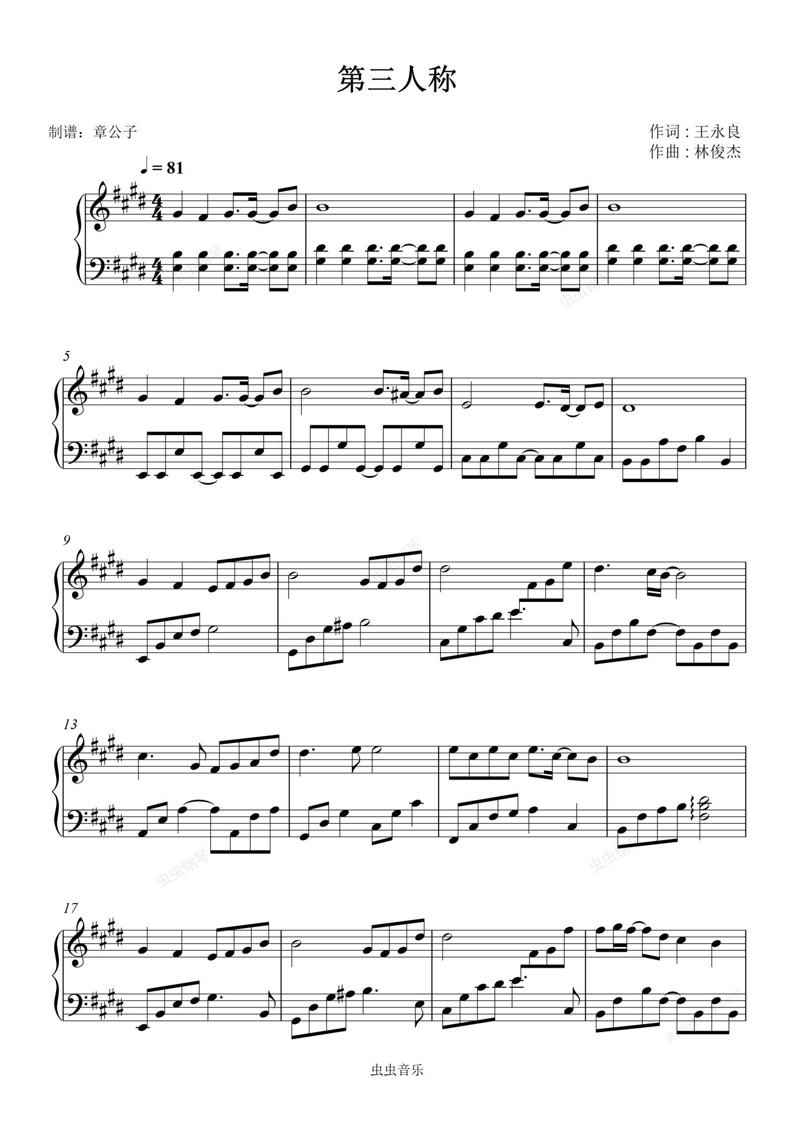 钢琴谱:第三人称 - 蔡依林 独奏谱E调