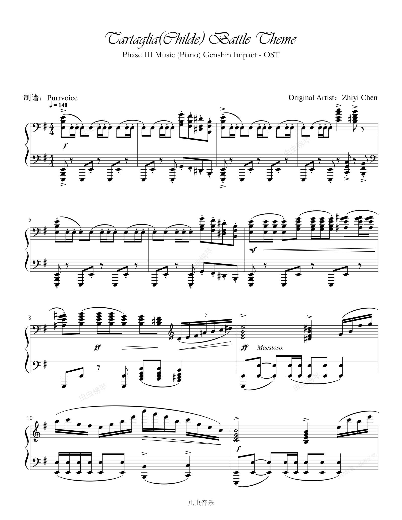 钢琴谱:【原神/钢琴】公子BOSS战 黄金屋3阶段战斗音乐改编