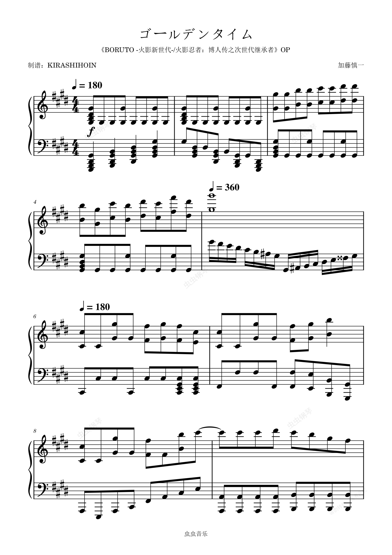钢琴谱:ゴールデンタイム/Golden Time(《BORUTO -火影新世代-/火影忍者:博人传之次世代继承者》OP)- 富士纤维