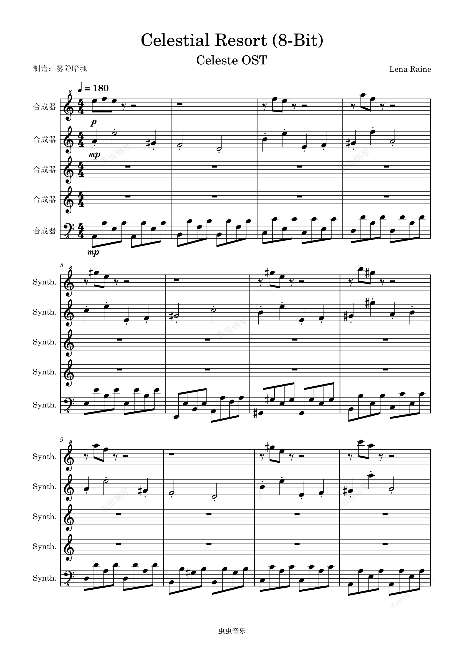 钢琴谱:Celestial Resort (8-Bit) - Celeste OST
