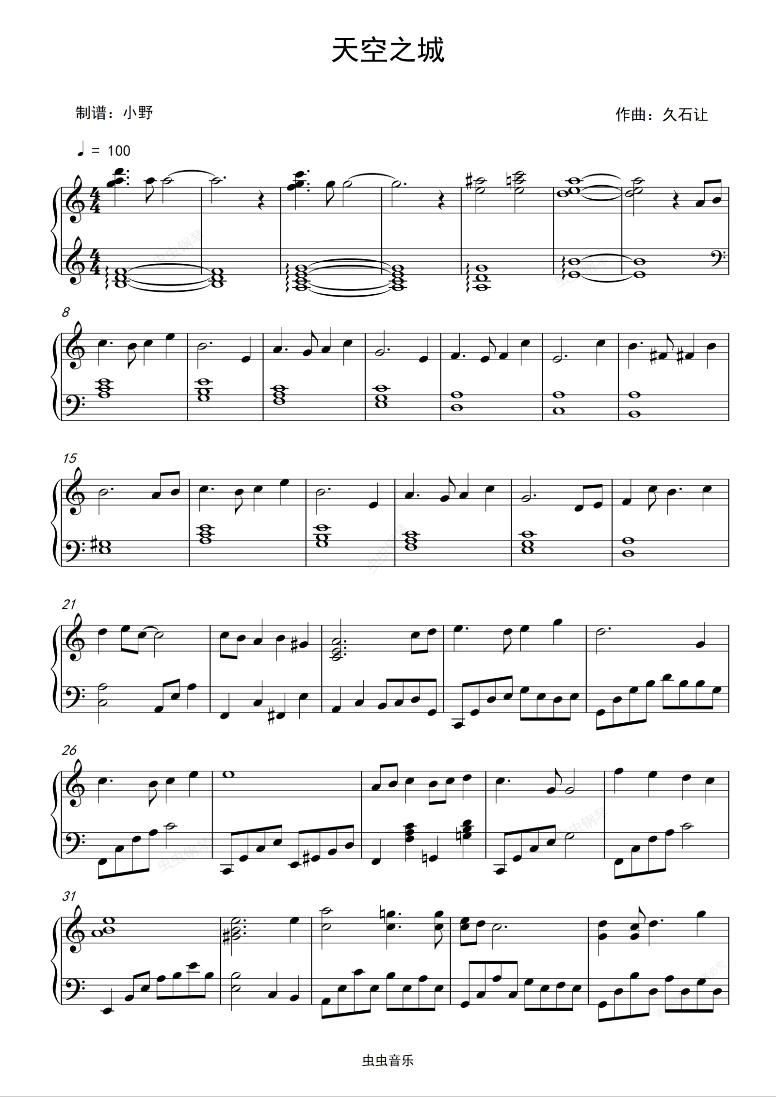钢琴谱:天空之城