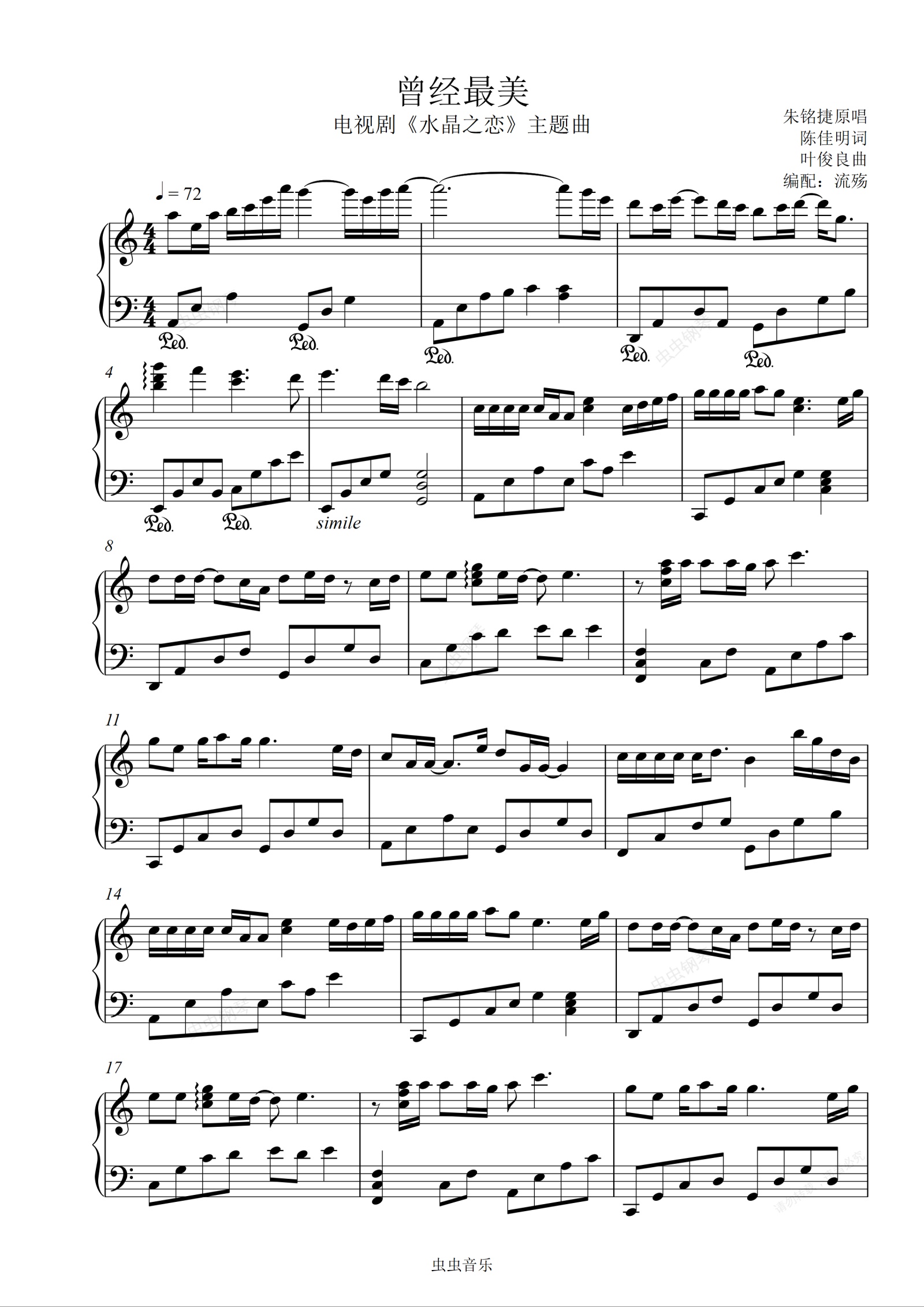 钢琴谱:曾经最美 C调简单版