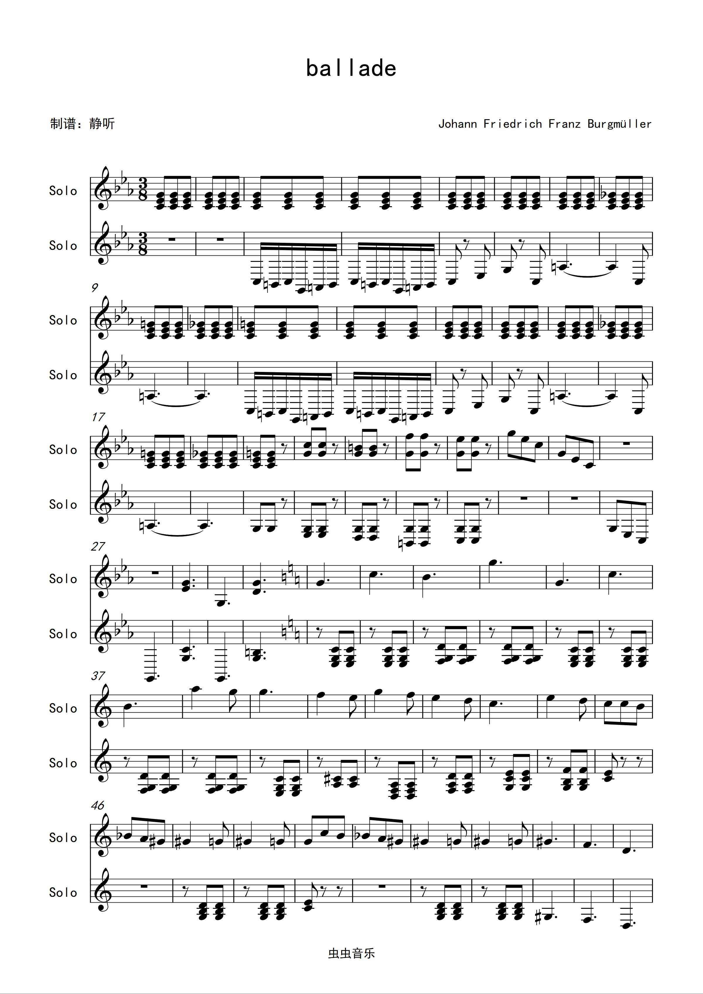 钢琴谱:Ballade 	Johann Friedrich Franz Burgmüller  钢琴谱 官方原版  静听编配