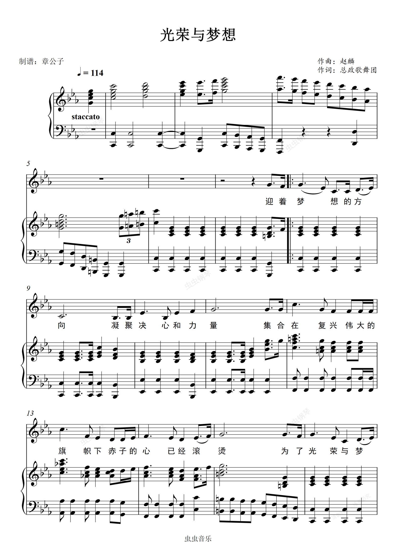 钢琴谱:光荣与梦想 - 总政歌舞团合唱队 弹唱(合唱伴奏)谱bE调