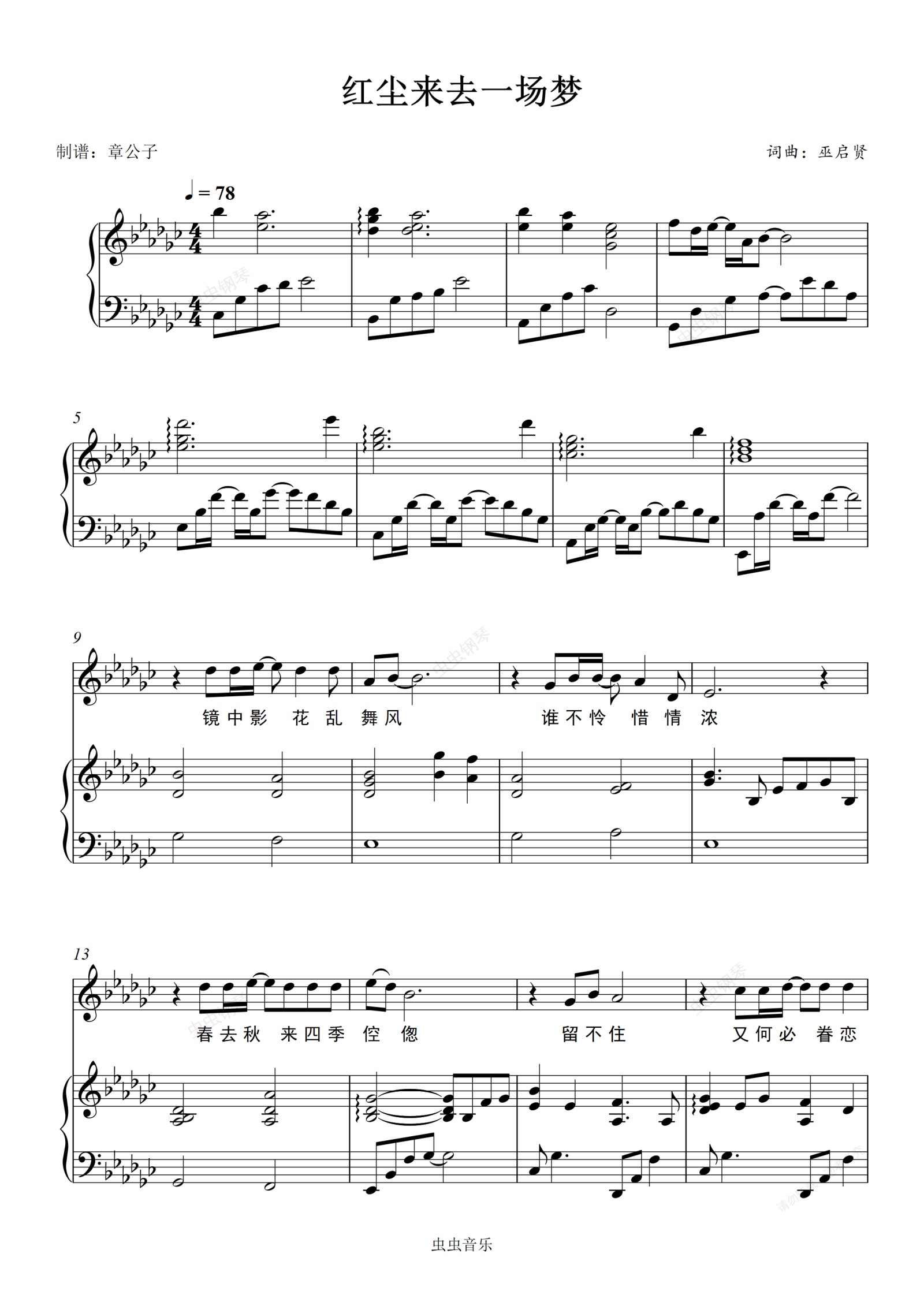 钢琴谱:红尘来去一场梦 - 杨宗纬 蒙面歌王(普罗米修斯) 弹唱谱bG调