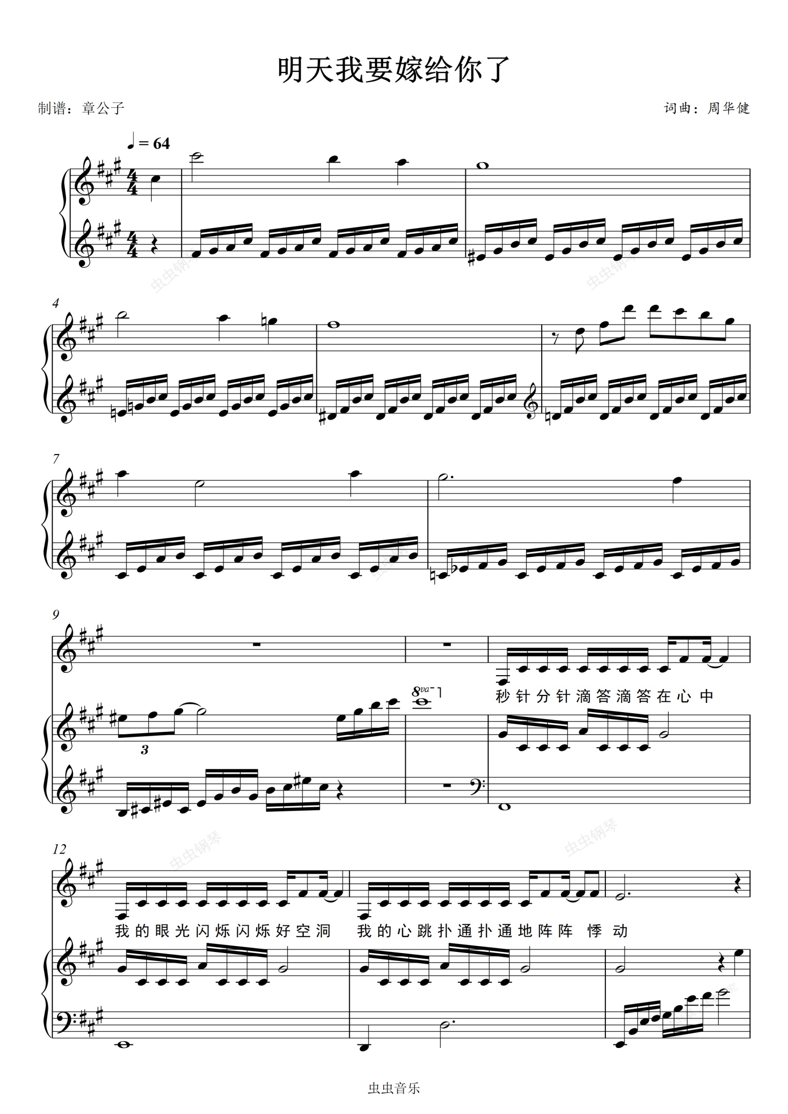 钢琴谱:明天我要嫁给你了 - 许茹芸 蒙面哥王(铁扇奥特曼) 完美弹唱谱A调