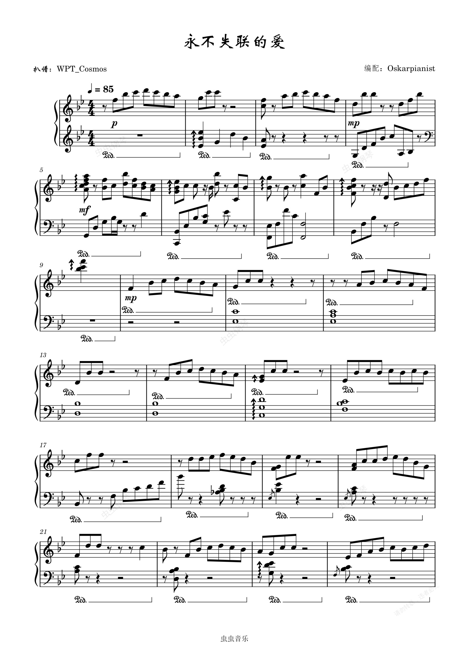 钢琴谱:永不失联的爱--罗曼耶卓 Oskarpianist