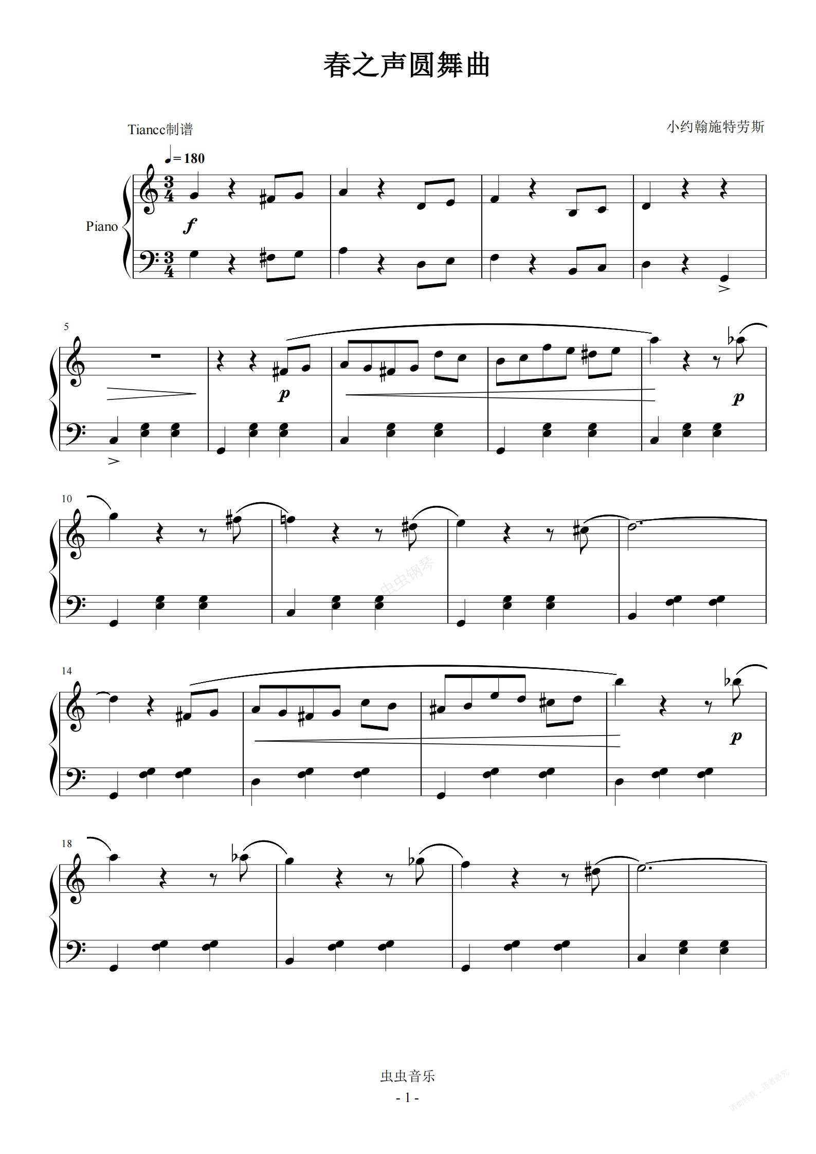 钢琴谱:《春之声圆舞曲》不朽名作,纯钢琴,849难度