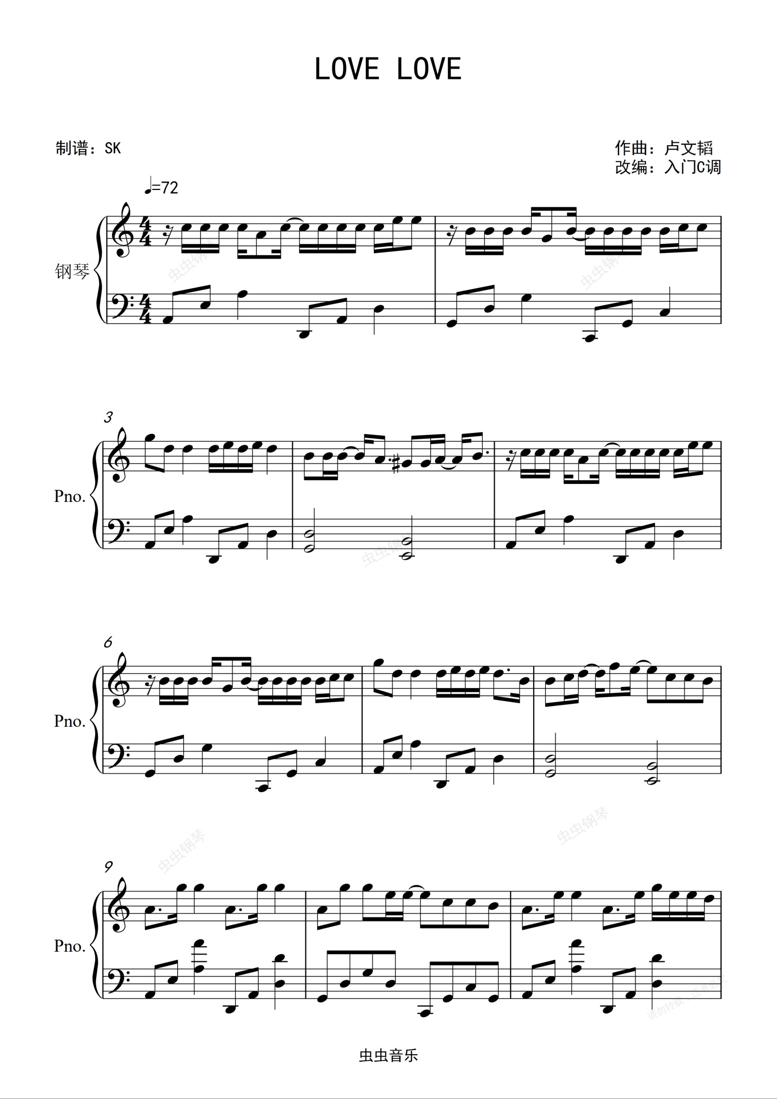 钢琴谱:金润吉《LOVE LOVE》(双世宠妃插曲)入门C调简单版