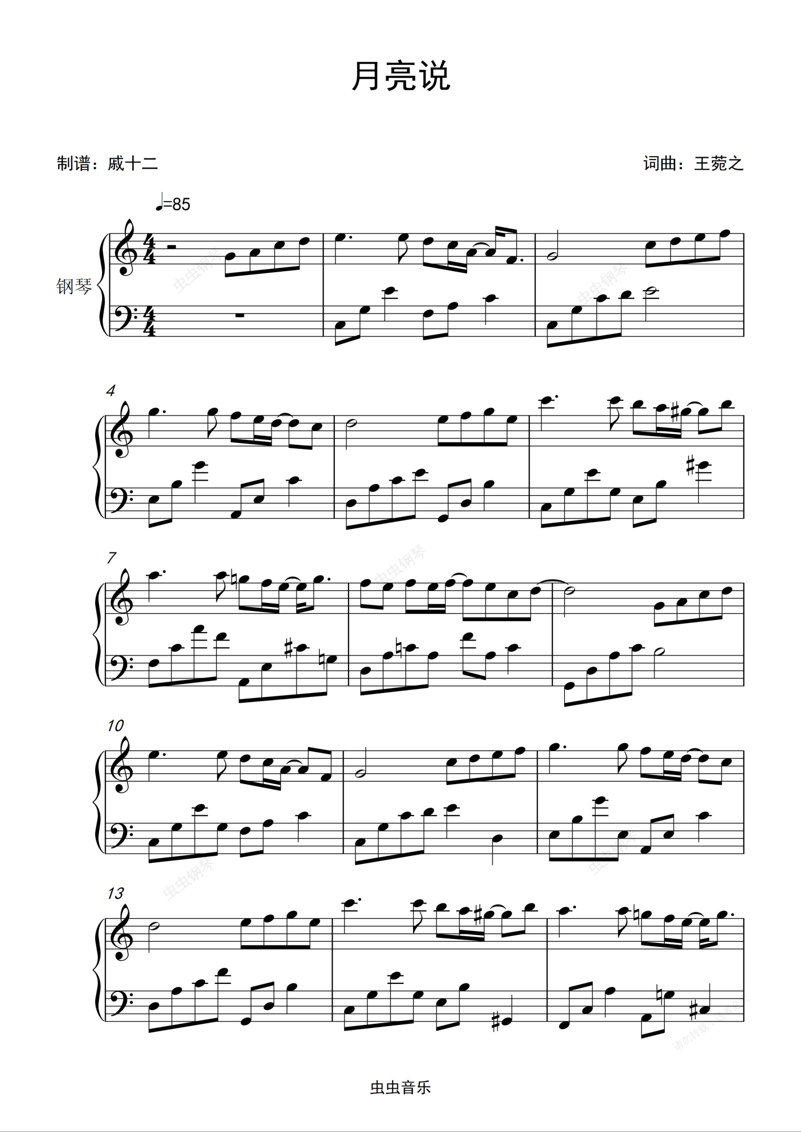 钢琴谱:月亮说-C调简单版