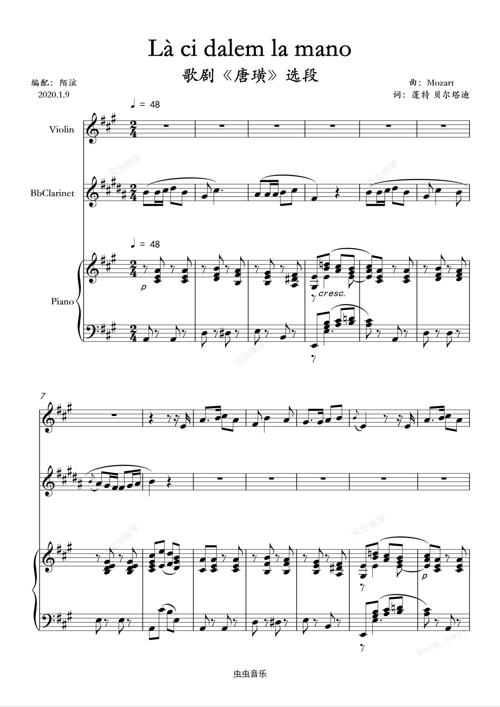 钢琴谱:Là ci darem la mano(让我们携手同行)——莫扎特歌剧《唐璜》唱段