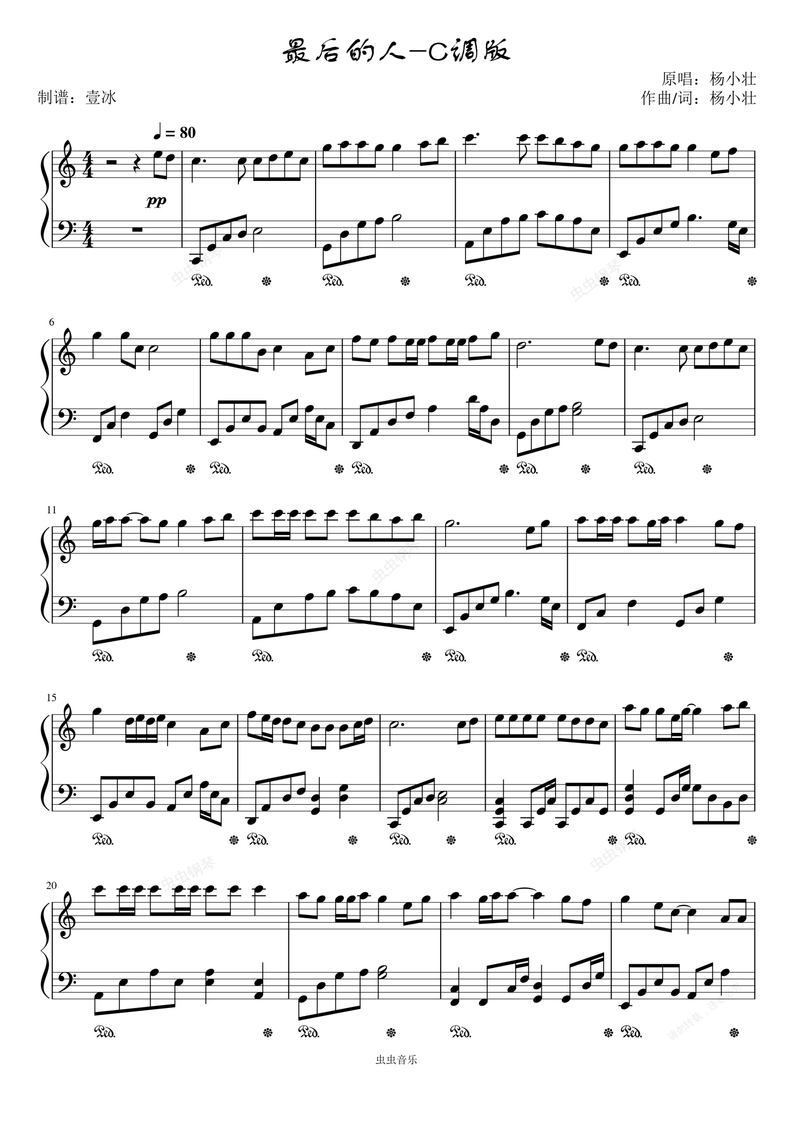 钢琴谱:最后的人//杨小壮-C调简单易上手