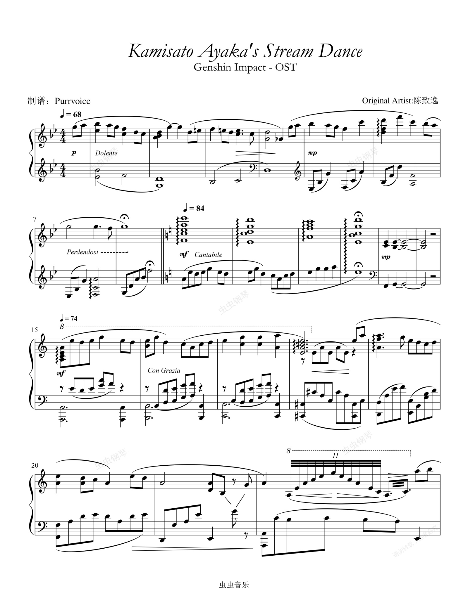 钢琴谱:神里绫华传说任务(溪水起舞)背景音乐改编
