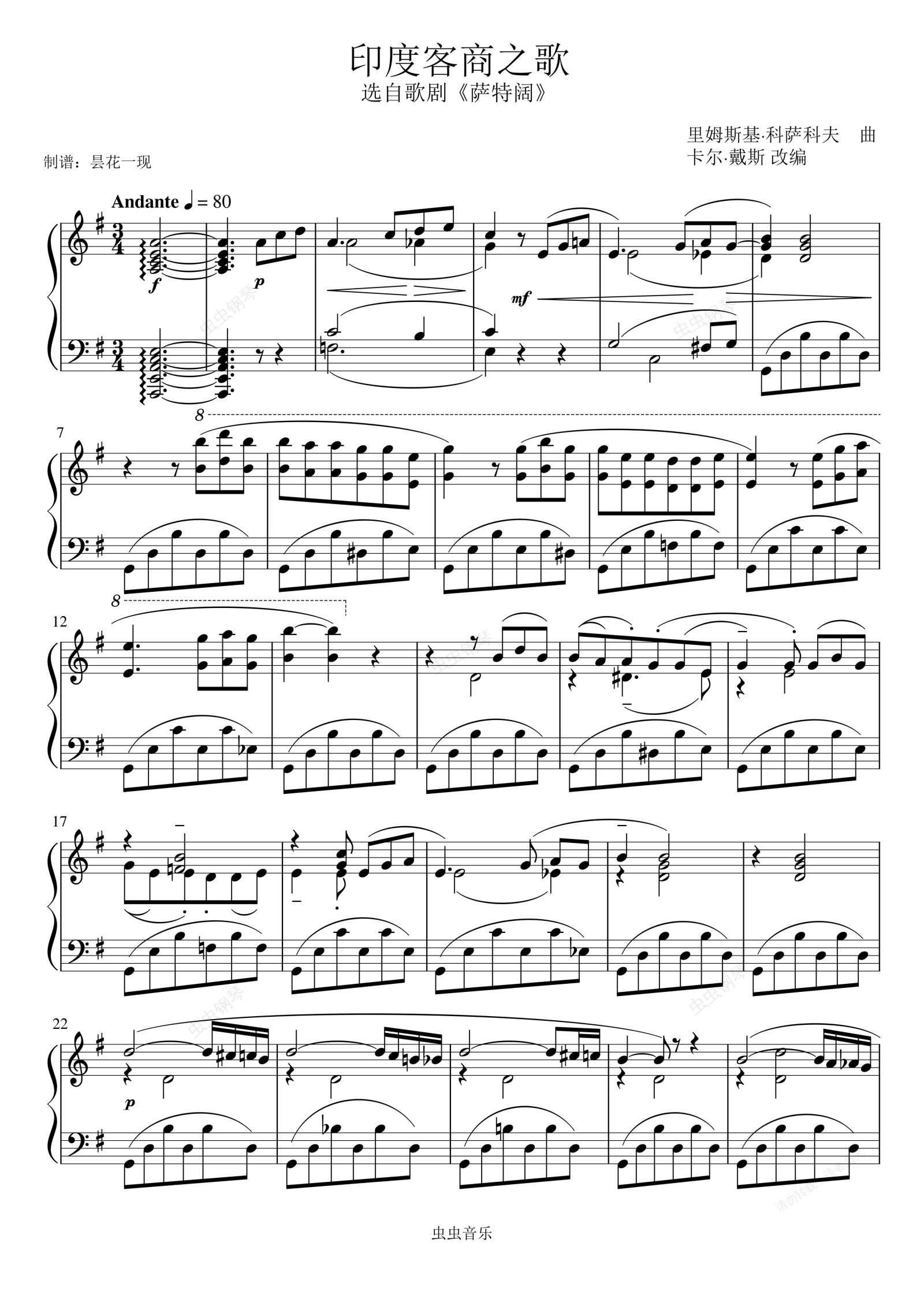 钢琴谱:印度客商之歌,选自歌剧《萨特阔》里姆斯基·科萨科夫 曲 卡尔·戴斯 改编