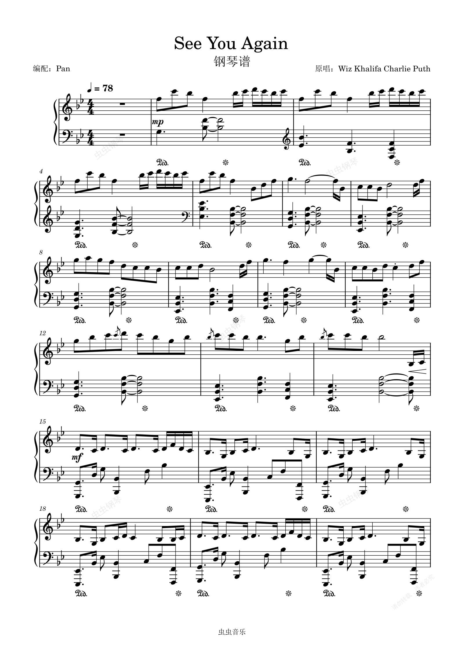 钢琴谱:See you again - Wiz Khalifa Charlie Puth (钢琴高燃还原)