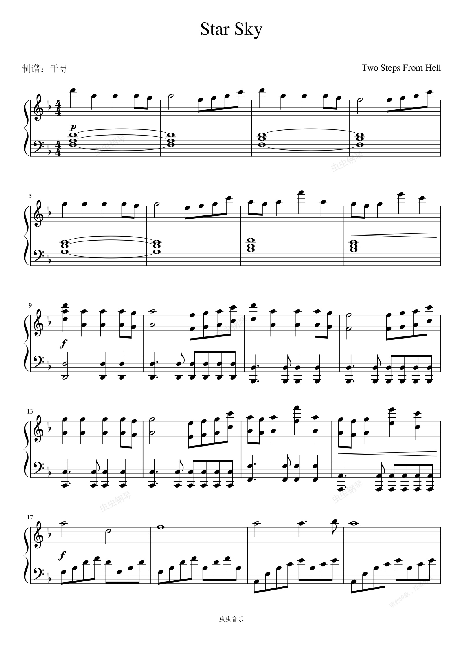 钢琴谱:Star Sky(星空)-Two Steps From Hell