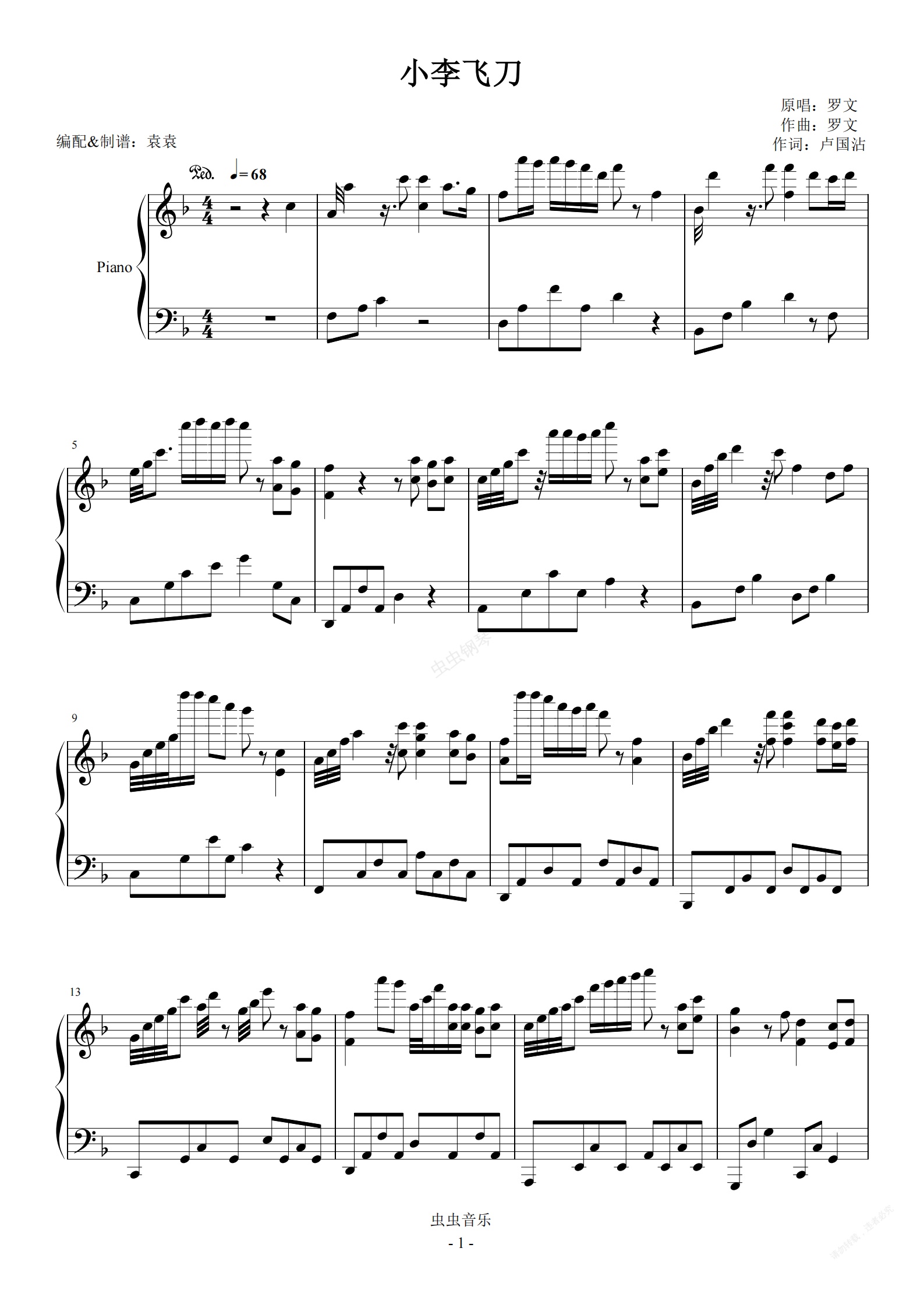 钢琴谱:焦恩俊版小李飞刀主题曲