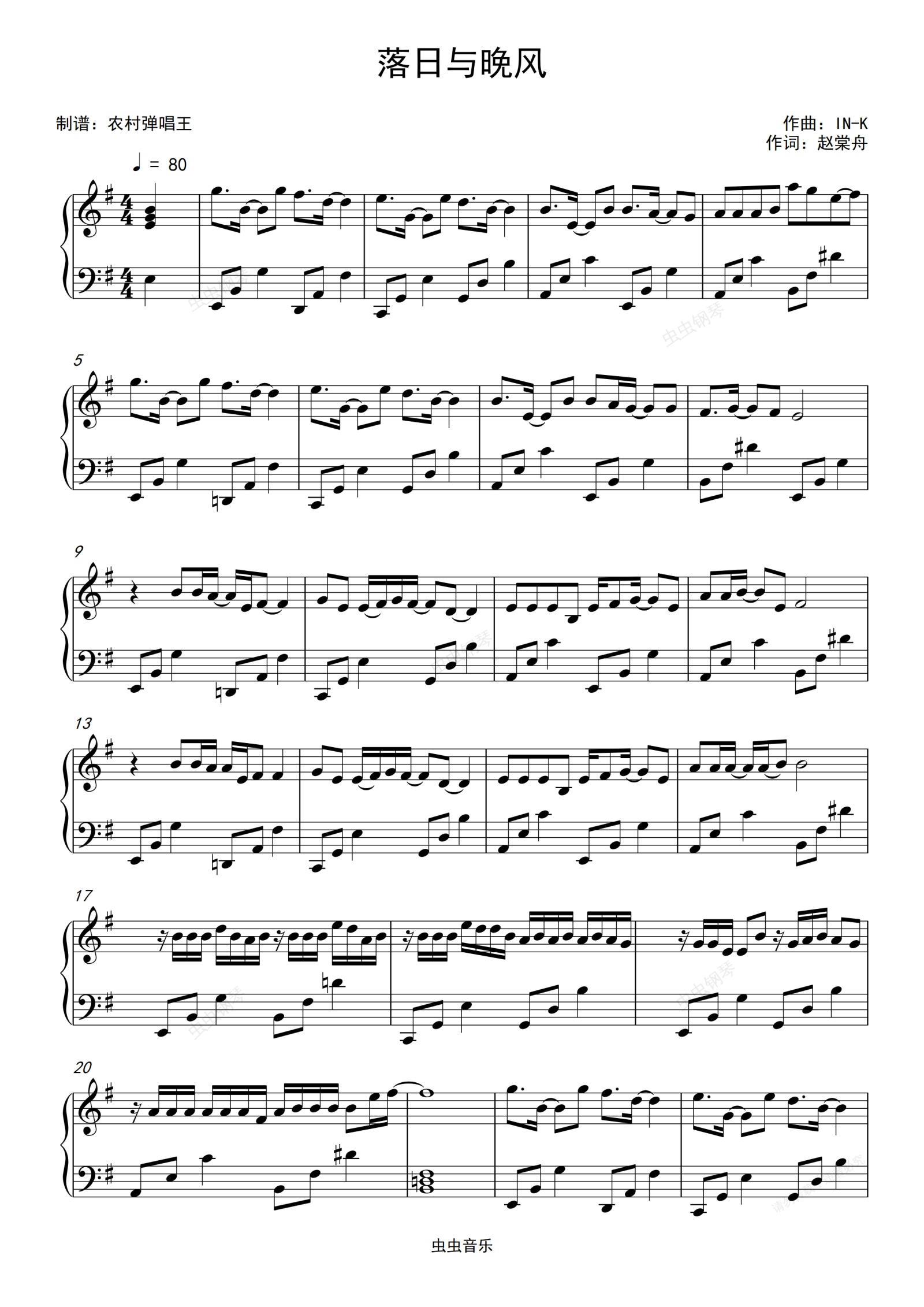 钢琴谱:落日与晚风钢琴谱