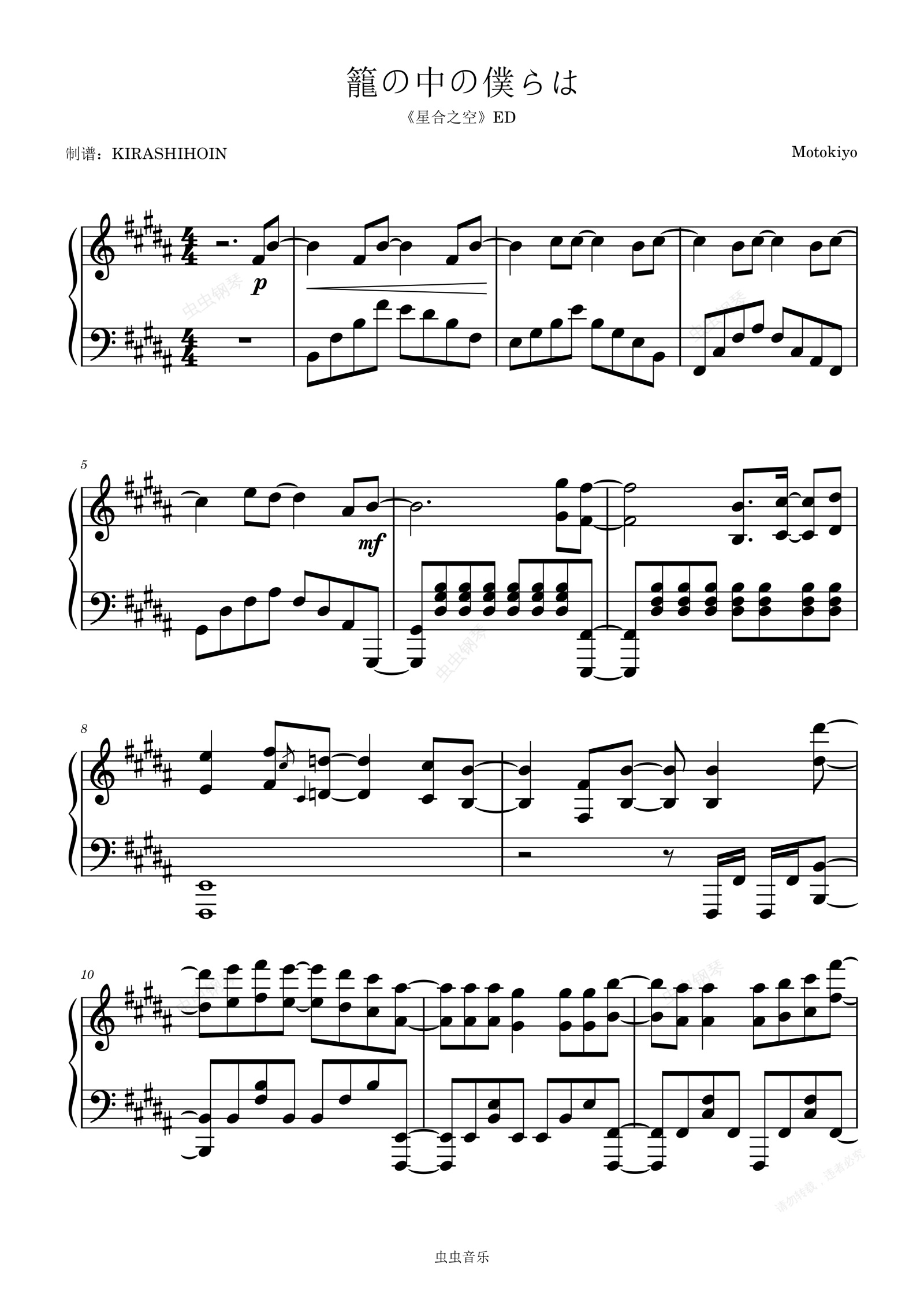钢琴谱:籠の中の僕らは/笼中的我们(《星合之空》ED)- AIKI