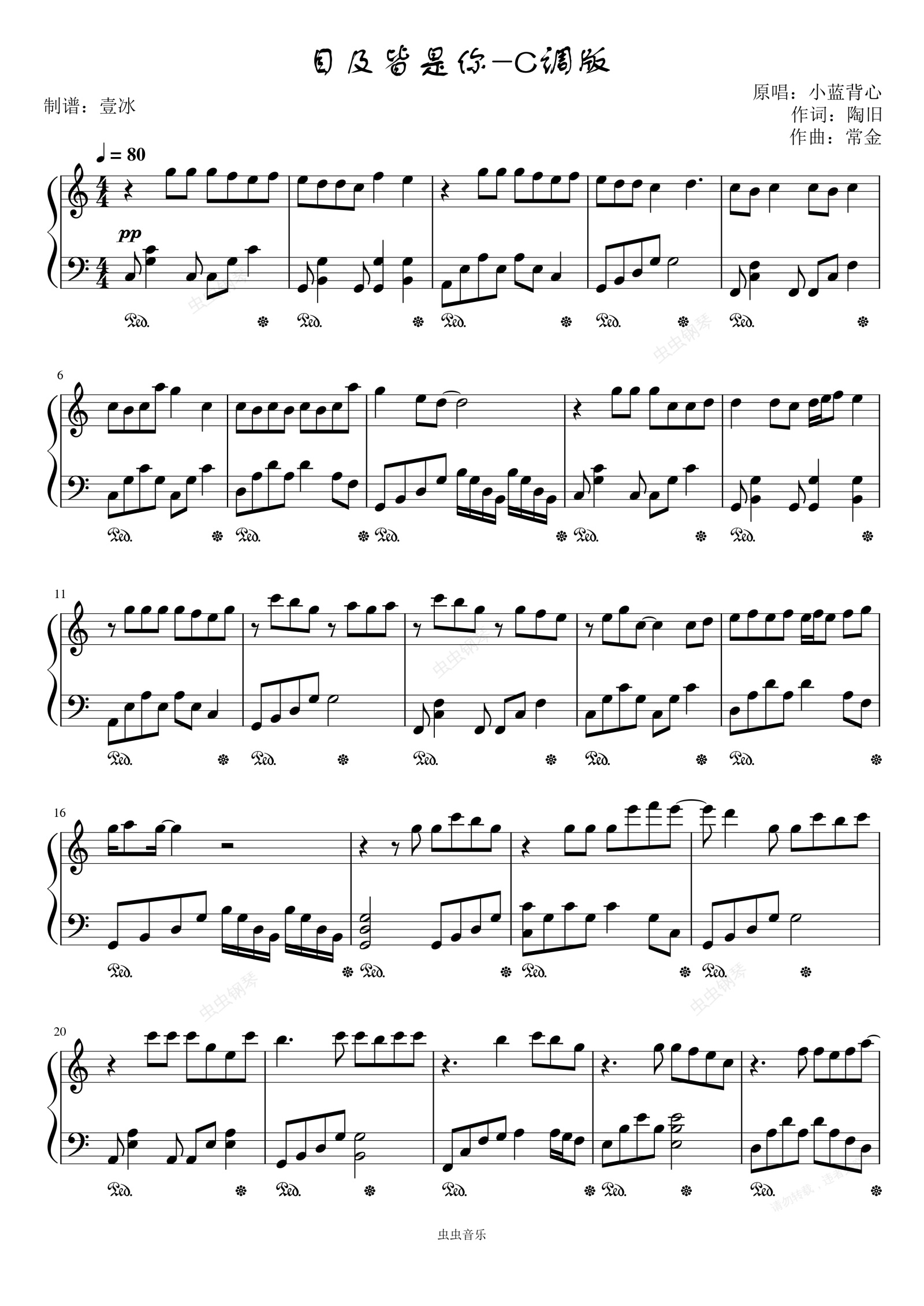 钢琴谱:目及皆是你//小蓝背心-C调版