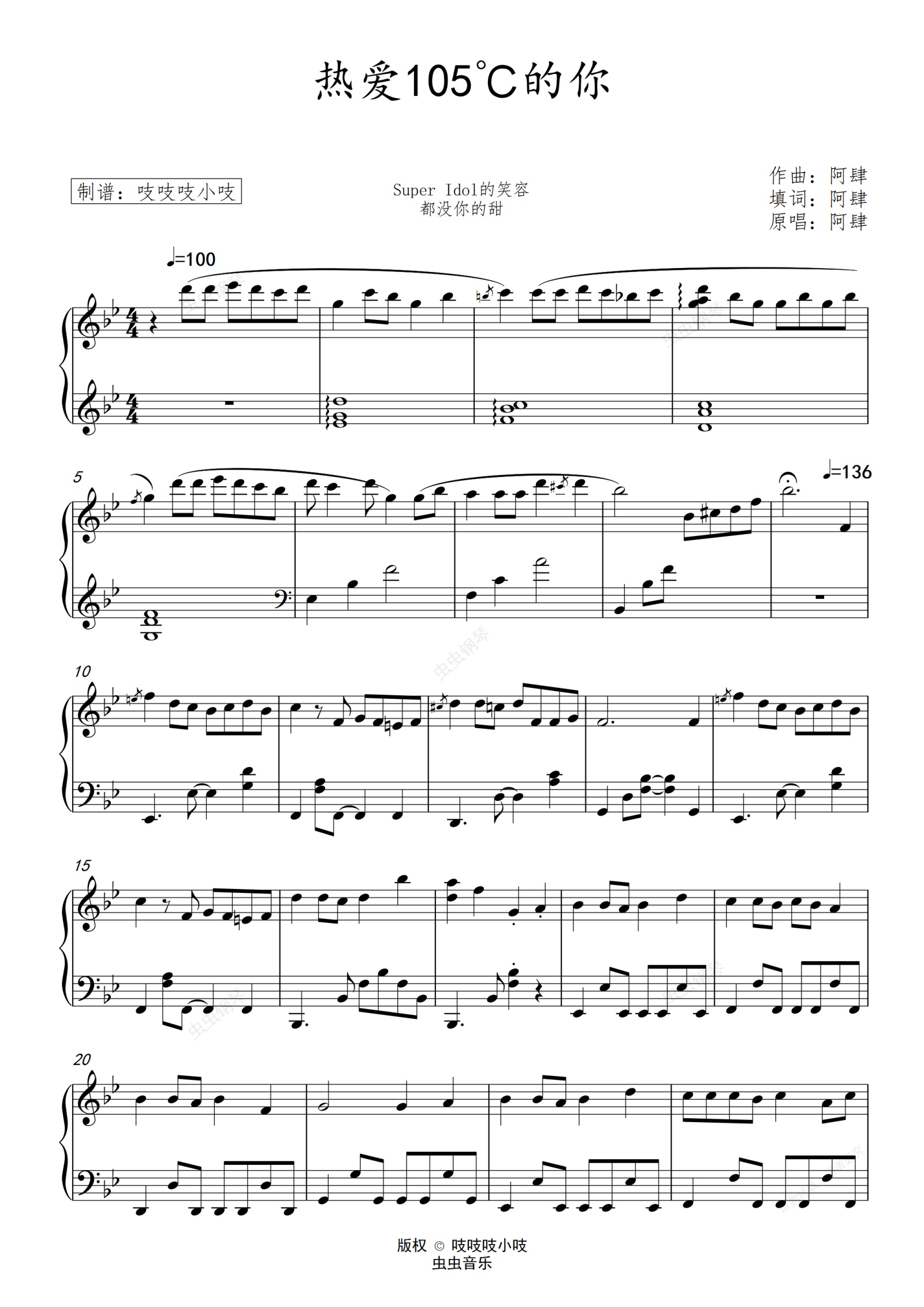 钢琴谱:热爱105°C的你  洗脑神曲