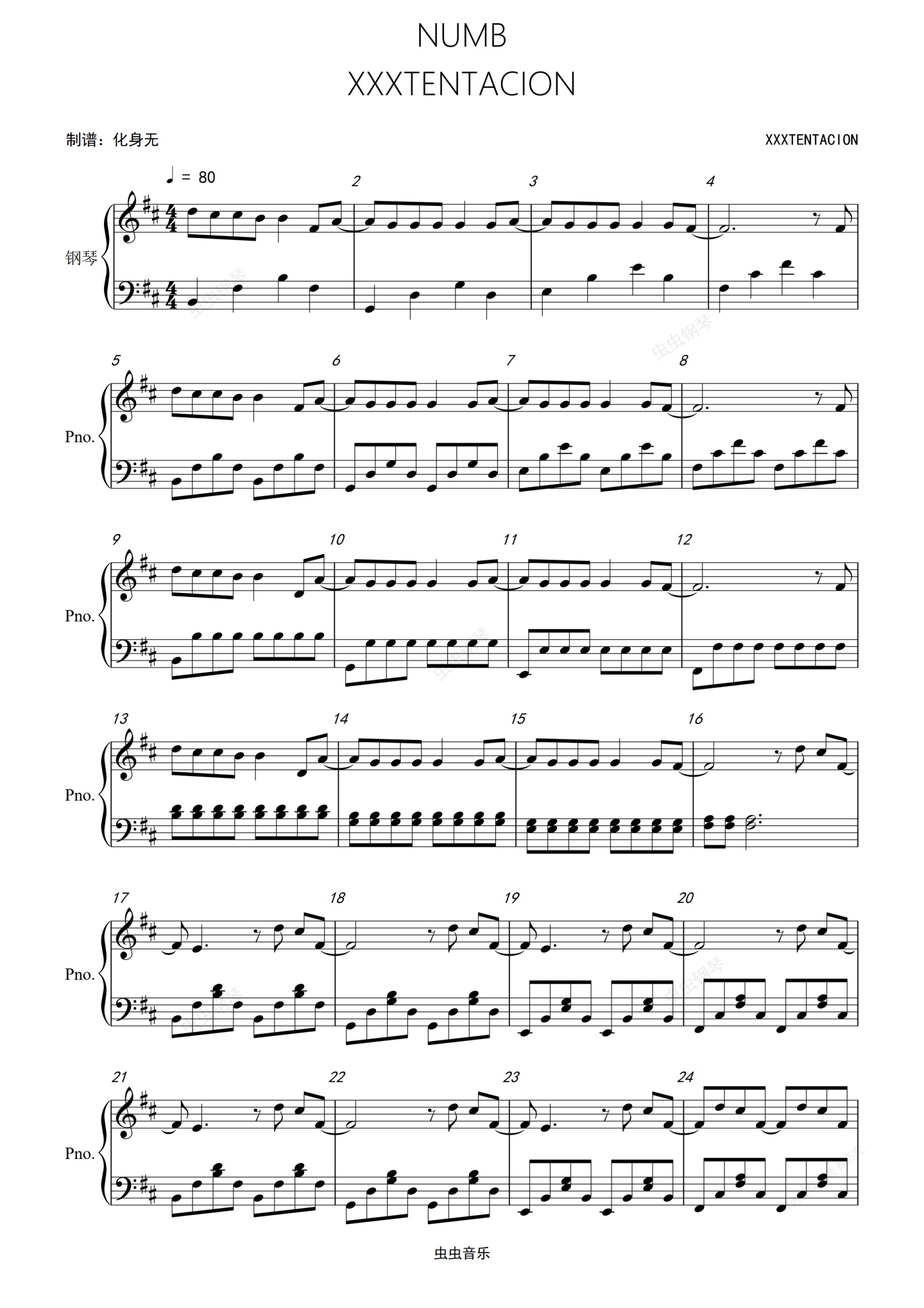 钢琴谱:NUMB - 原调独奏版