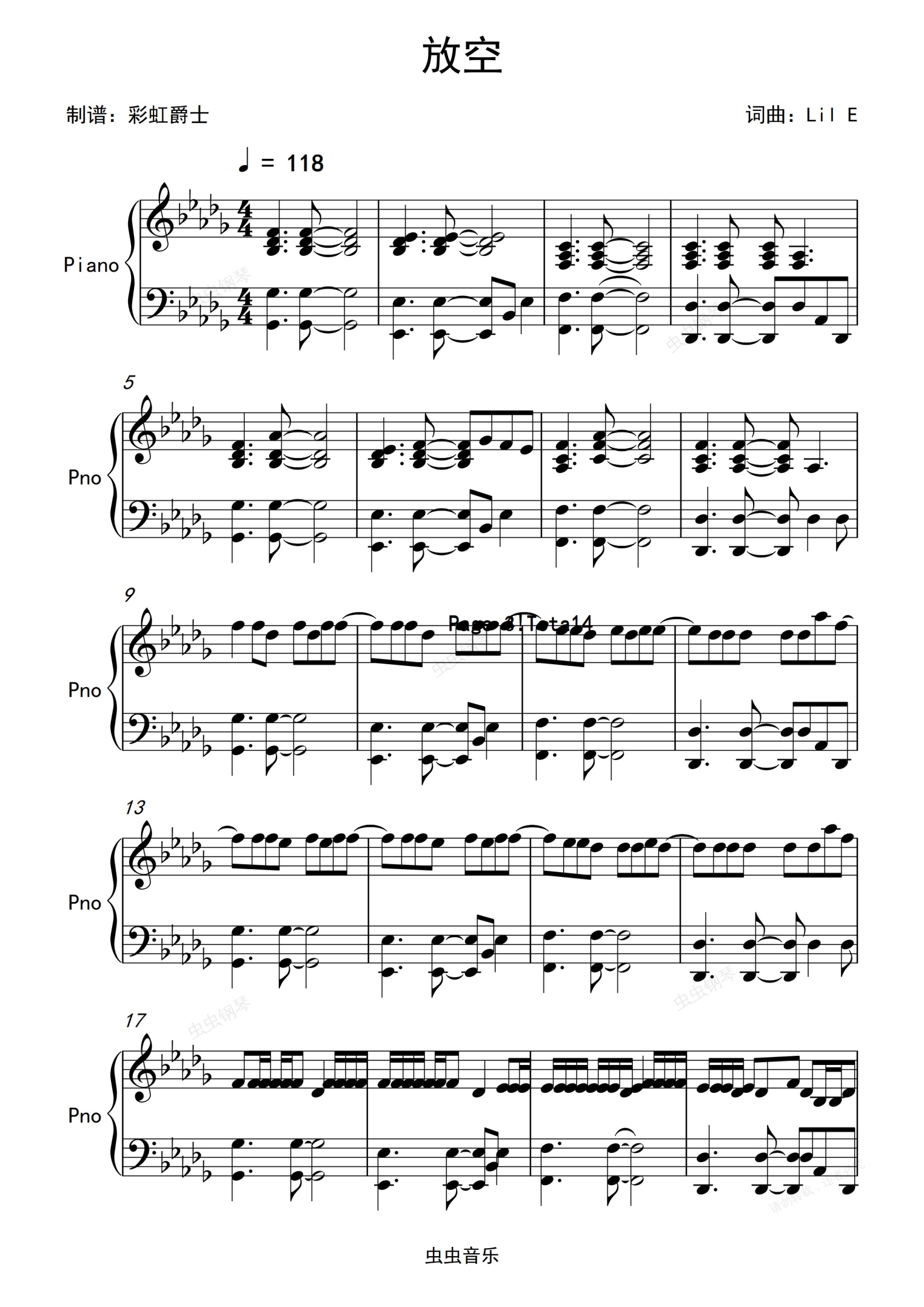 钢琴谱:放空 Lil E 大籽 钢琴谱 原调