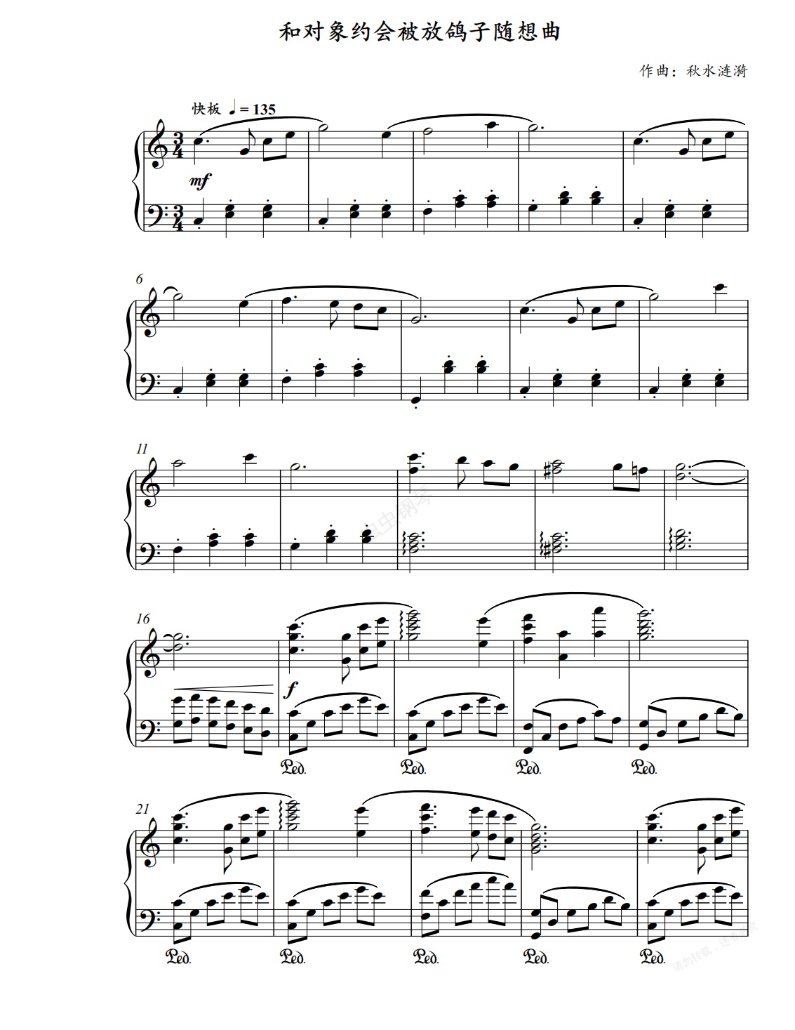 钢琴谱:原创钢琴作品  和对象约会被放鸽子随想曲