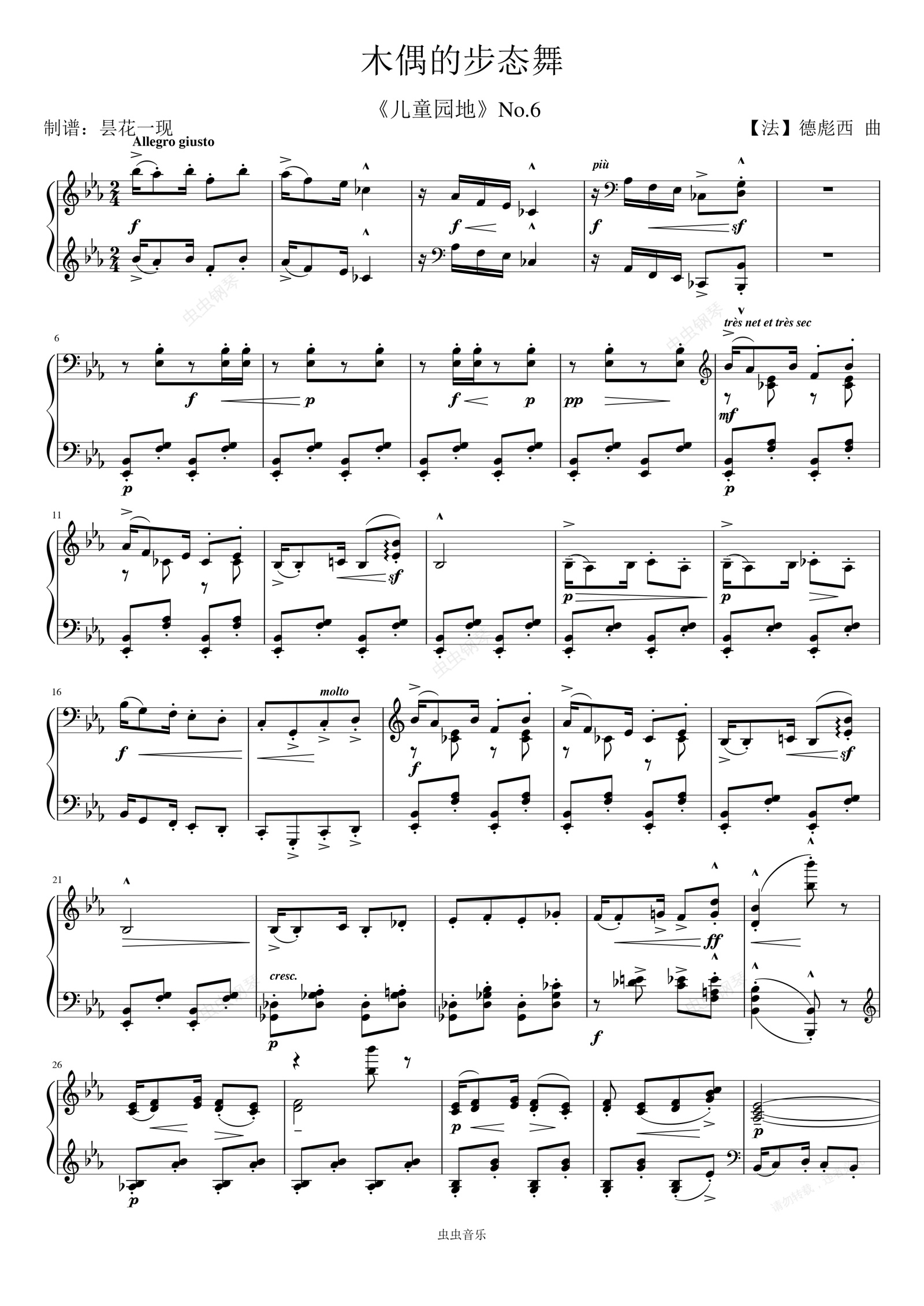 钢琴谱:木偶的步态舞《儿童园地》No.6,德彪西