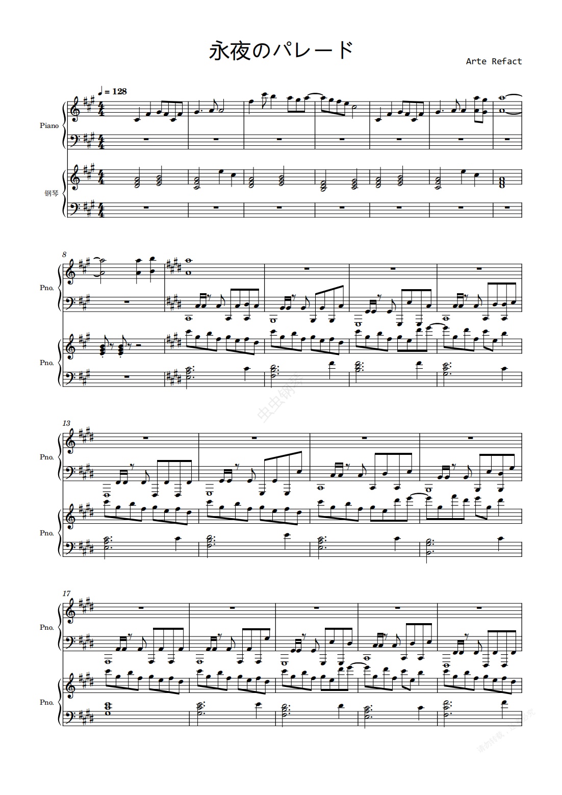 钢琴谱:【东方project】永夜のパレード -Arte Refact