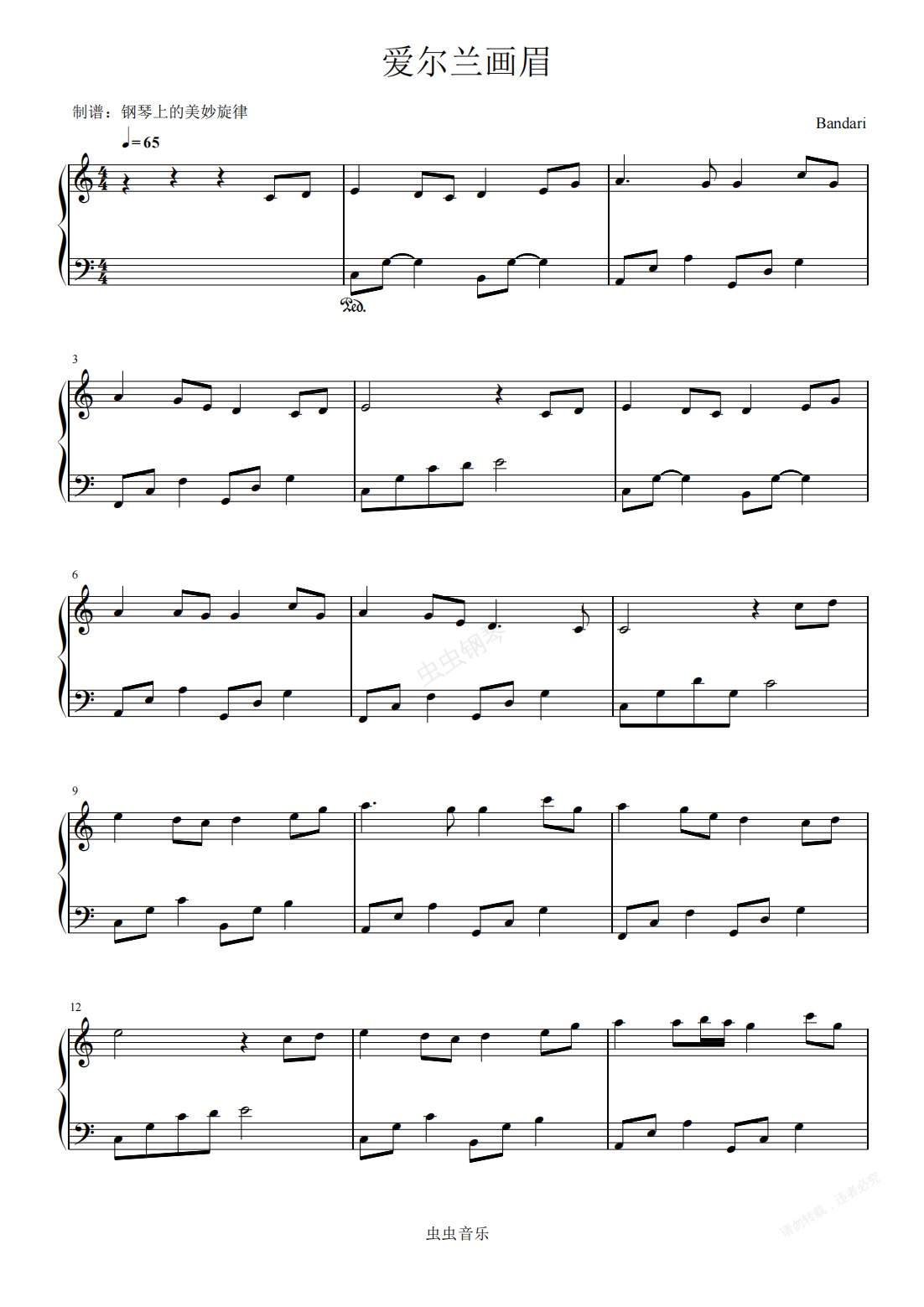 钢琴谱:爱尔兰画眉 C调简易版 班得瑞