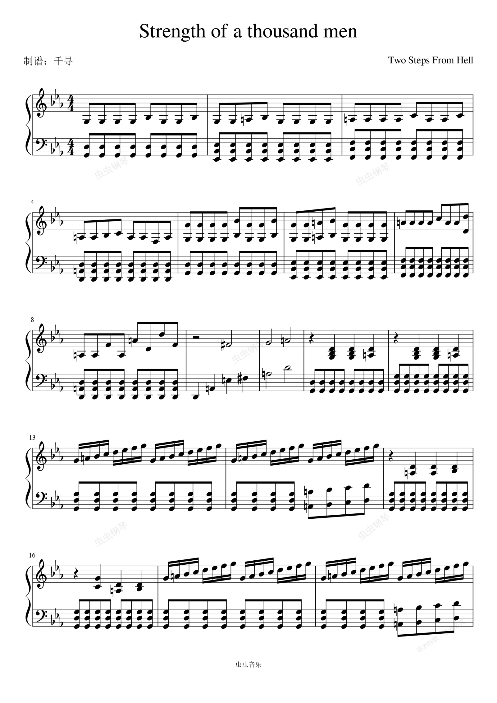 钢琴谱:Strength of a thousand men(Two Steps From Hell)