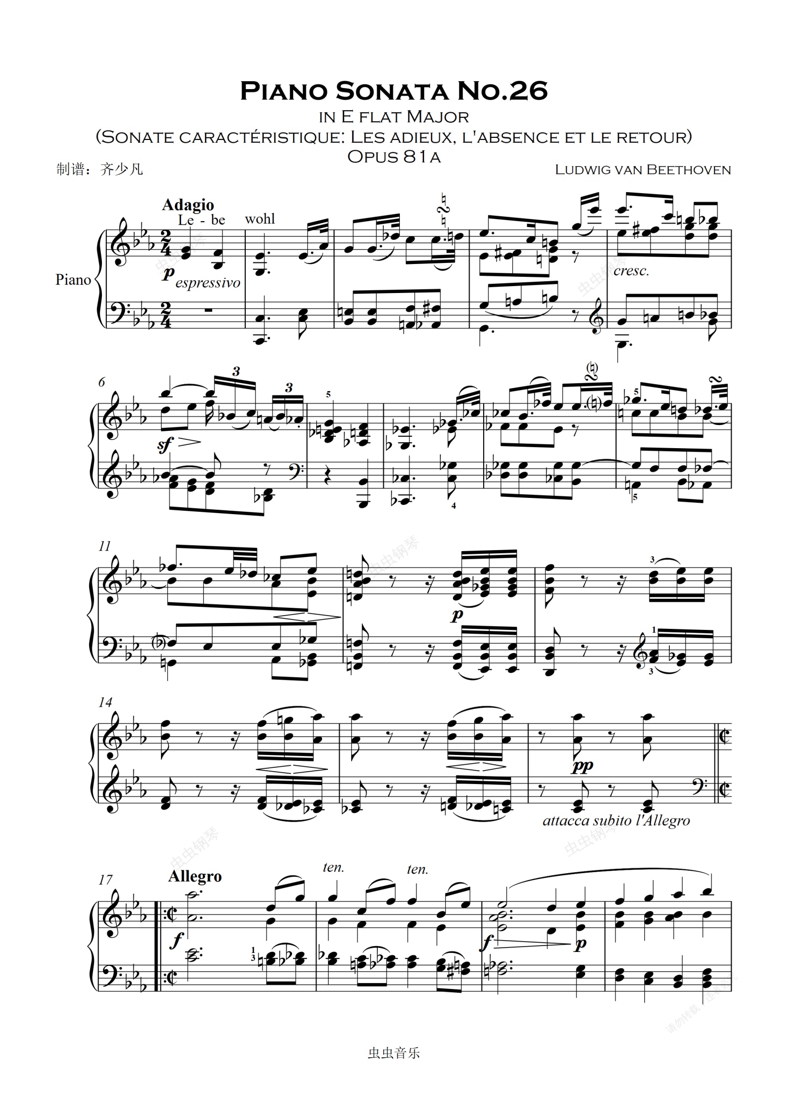 钢琴谱:第二十六钢琴奏鸣曲降E大调告别-贝多芬钢琴奏鸣曲全集计划