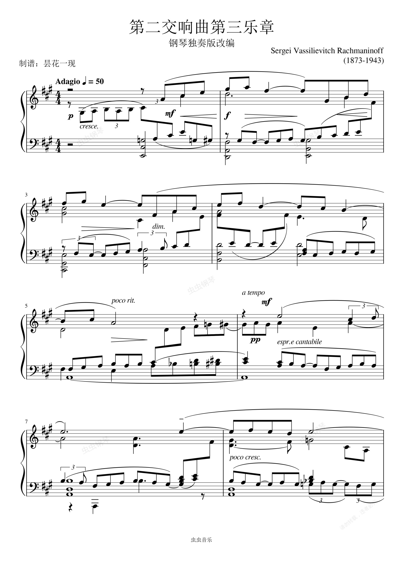钢琴谱:第二交响曲第三乐章,钢琴版改编,拉赫玛尼诺夫