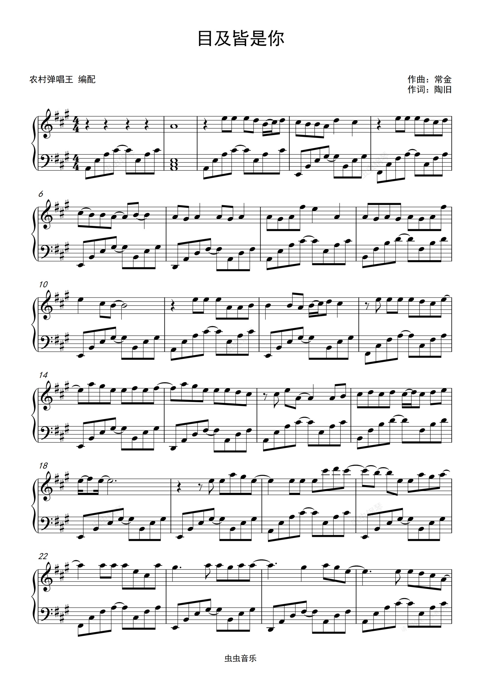 钢琴谱:目及皆是你钢琴谱