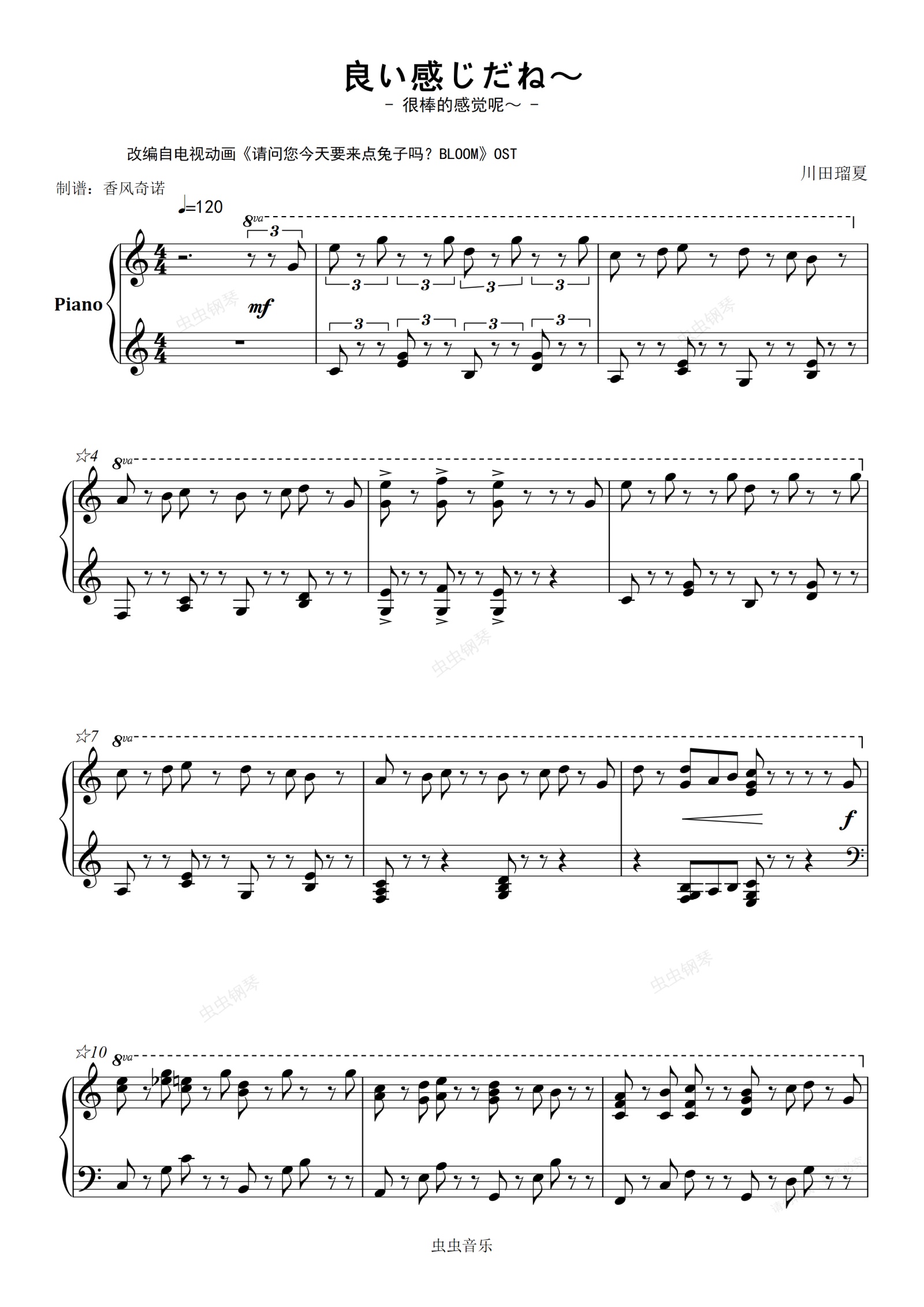 钢琴谱:【点兔】良い感じだね~(很棒的感觉呢~)