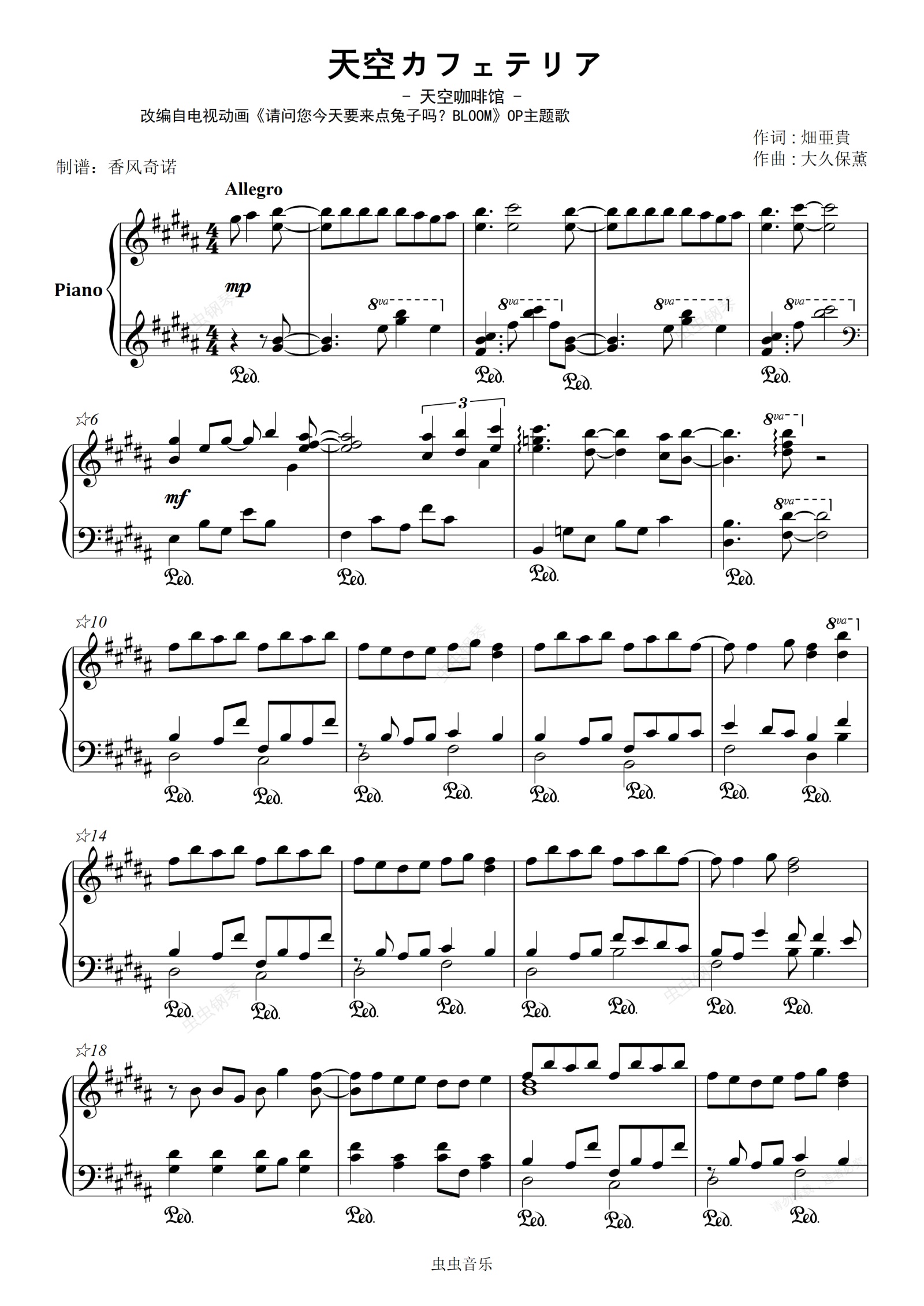 钢琴谱:【点兔】天空カフェテリア(天空咖啡馆)