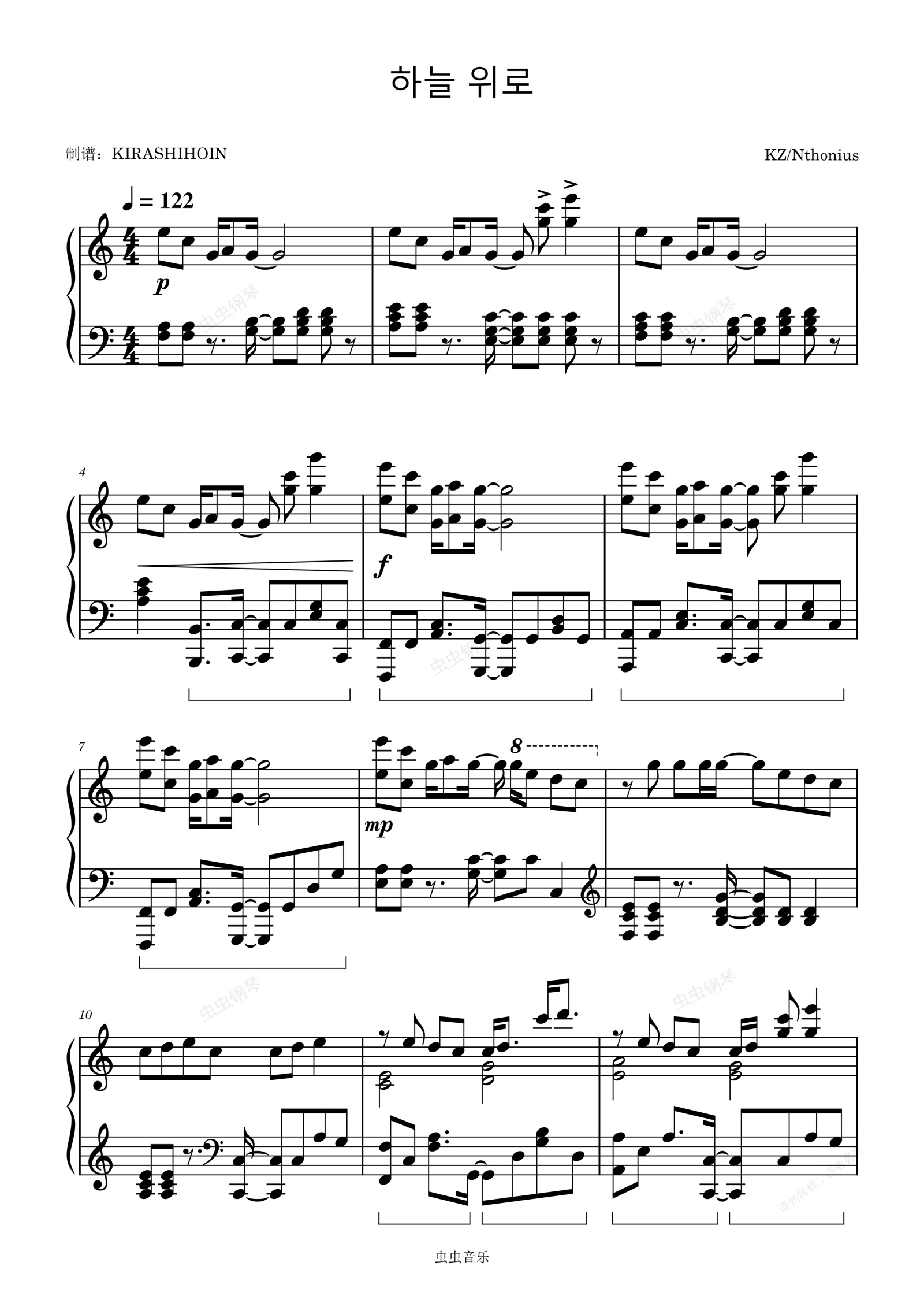 钢琴谱:天空之上/하늘 위로[C调] - IZ*ONE