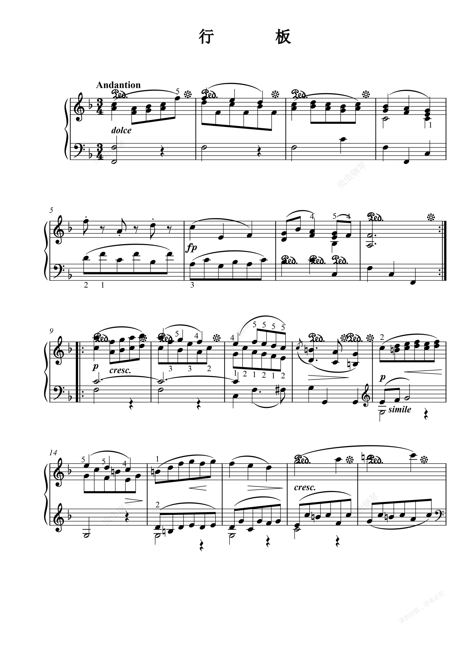 钢琴谱:行板(选自歌剧《奥菲欧》)