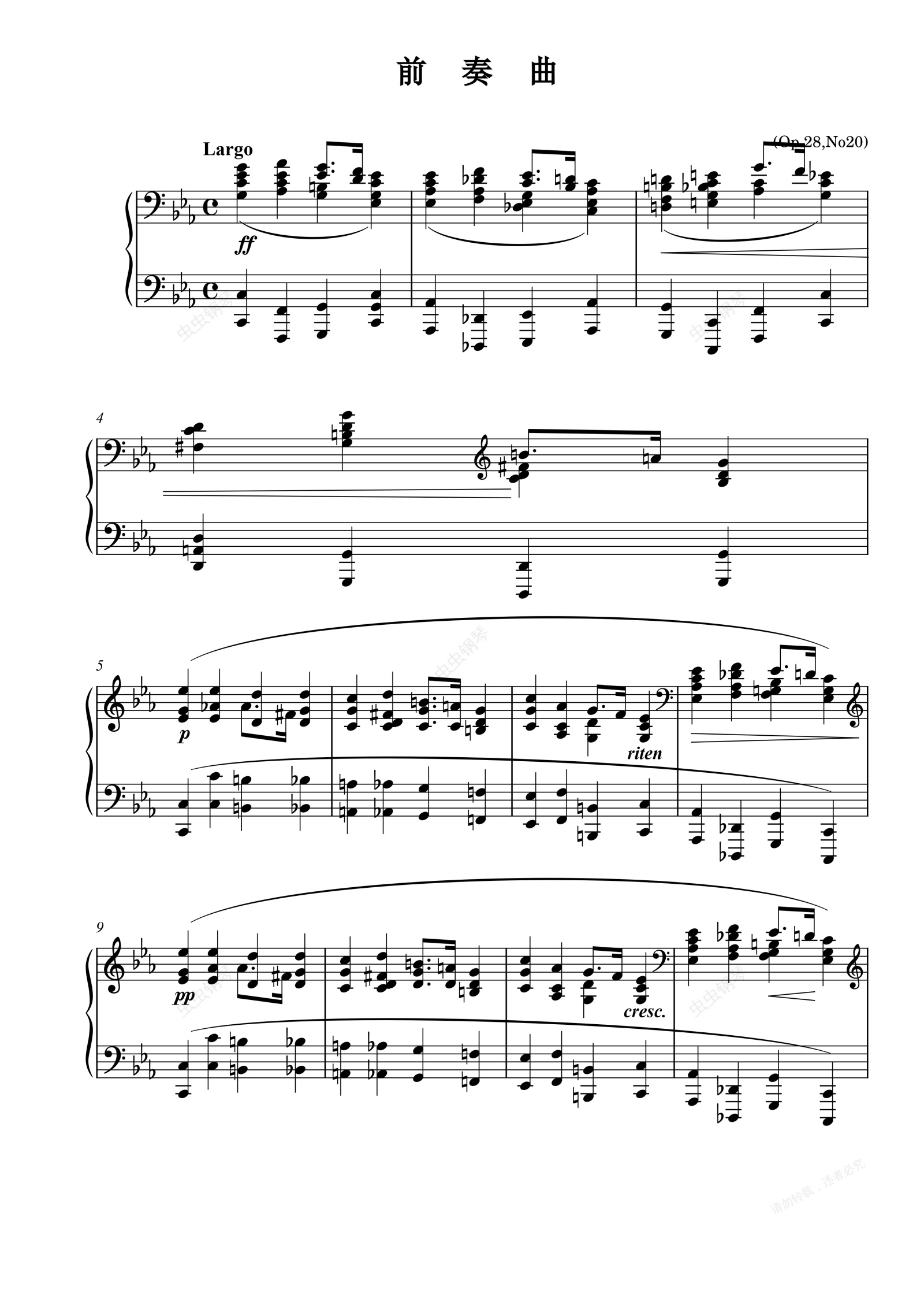 钢琴谱:前奏曲(肖邦 Op.28,No.20)
