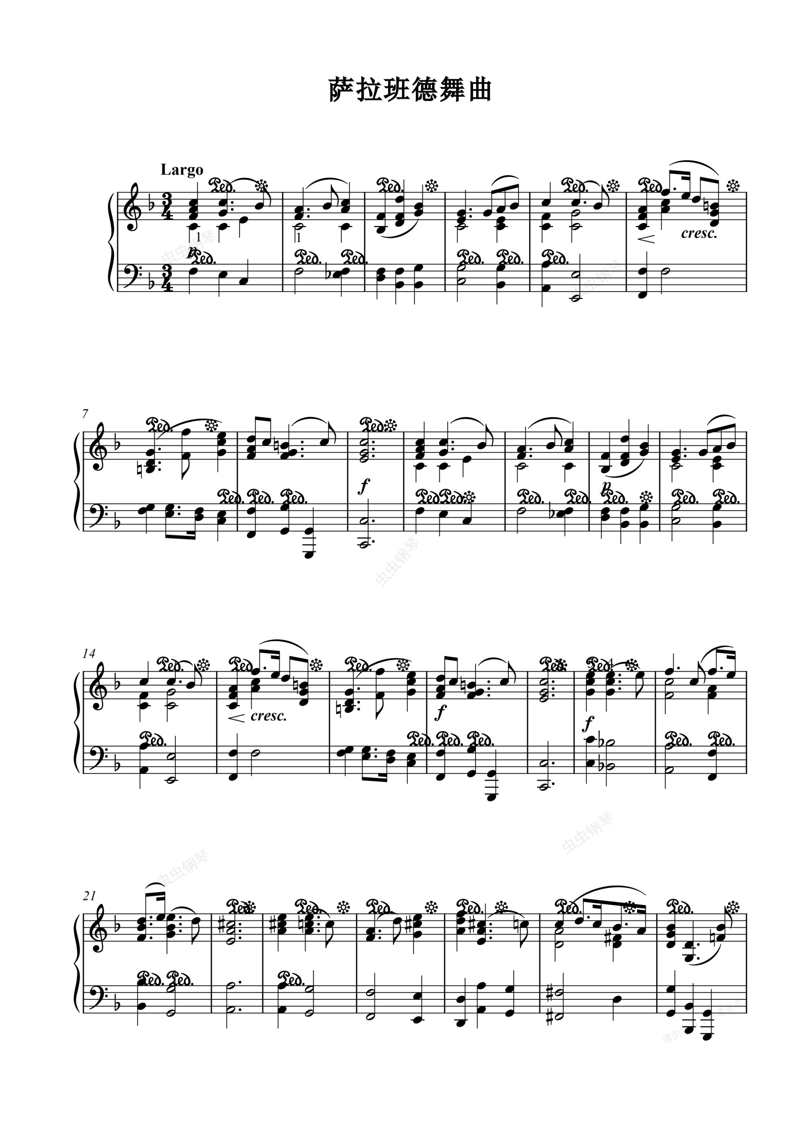 钢琴谱:萨拉班德舞曲