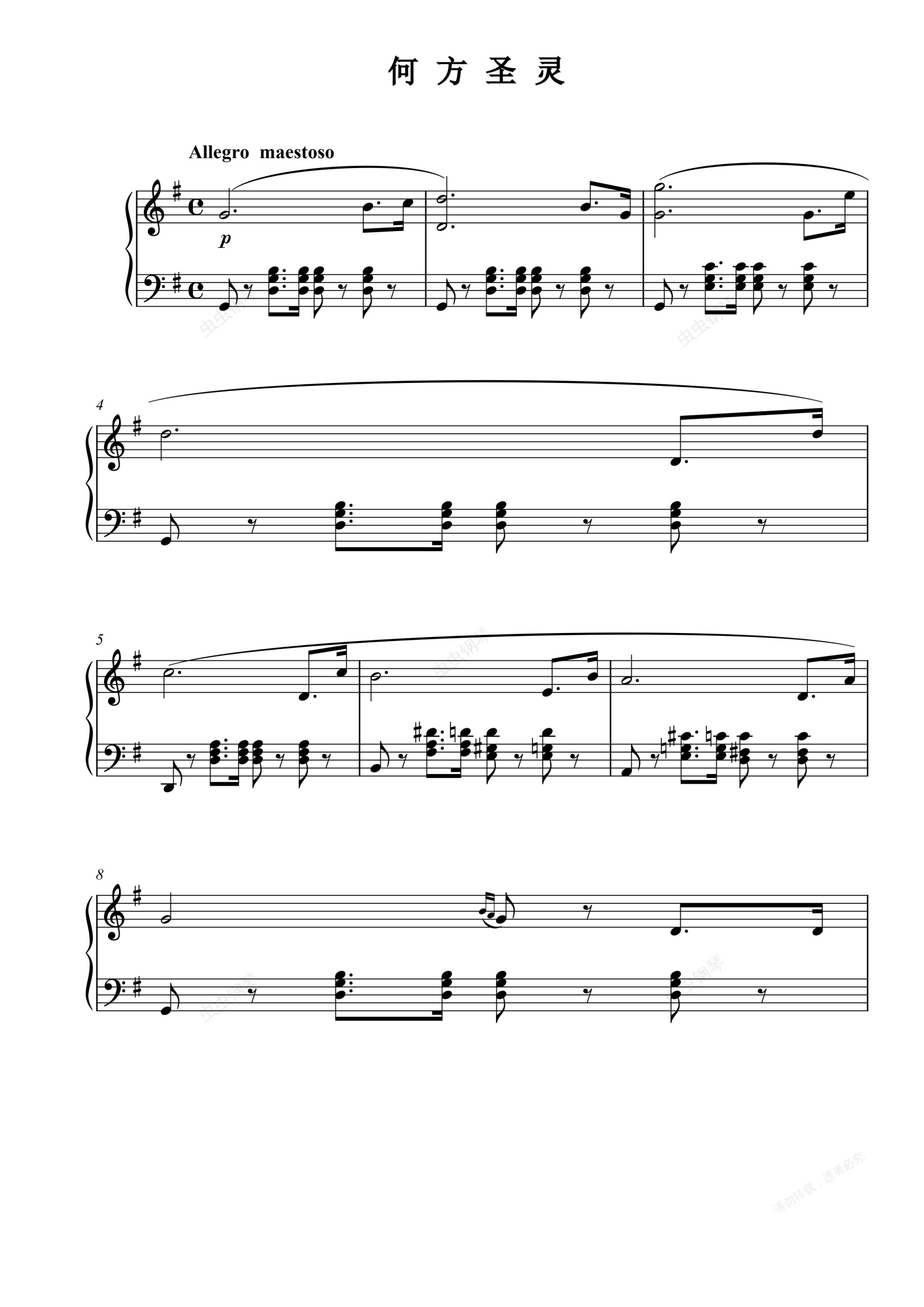 钢琴谱:何方神圣(选自《圣母悼歌》)
