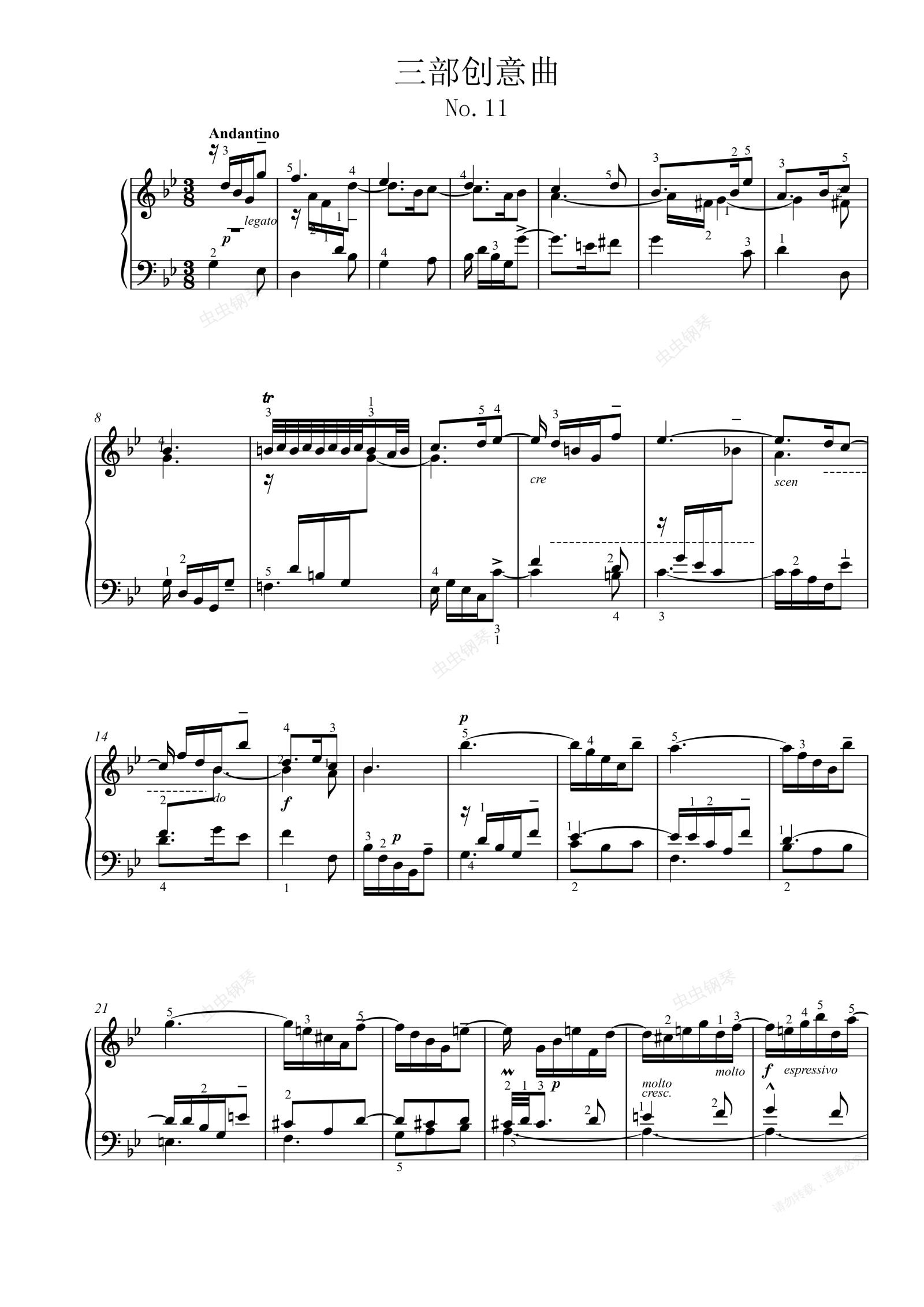 钢琴谱:三部创意曲No.11