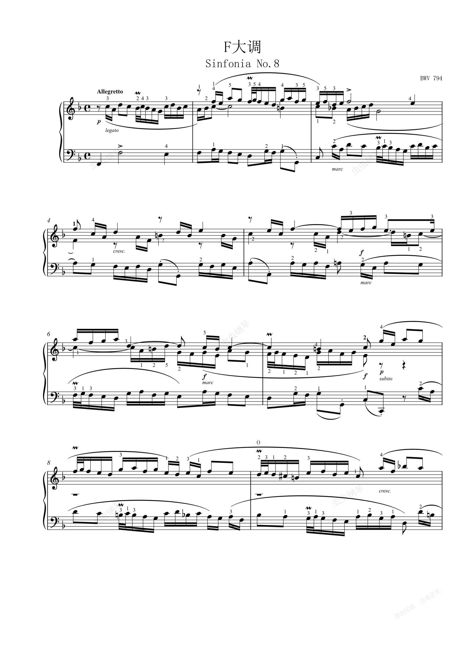 钢琴谱:三部创意曲No.8
