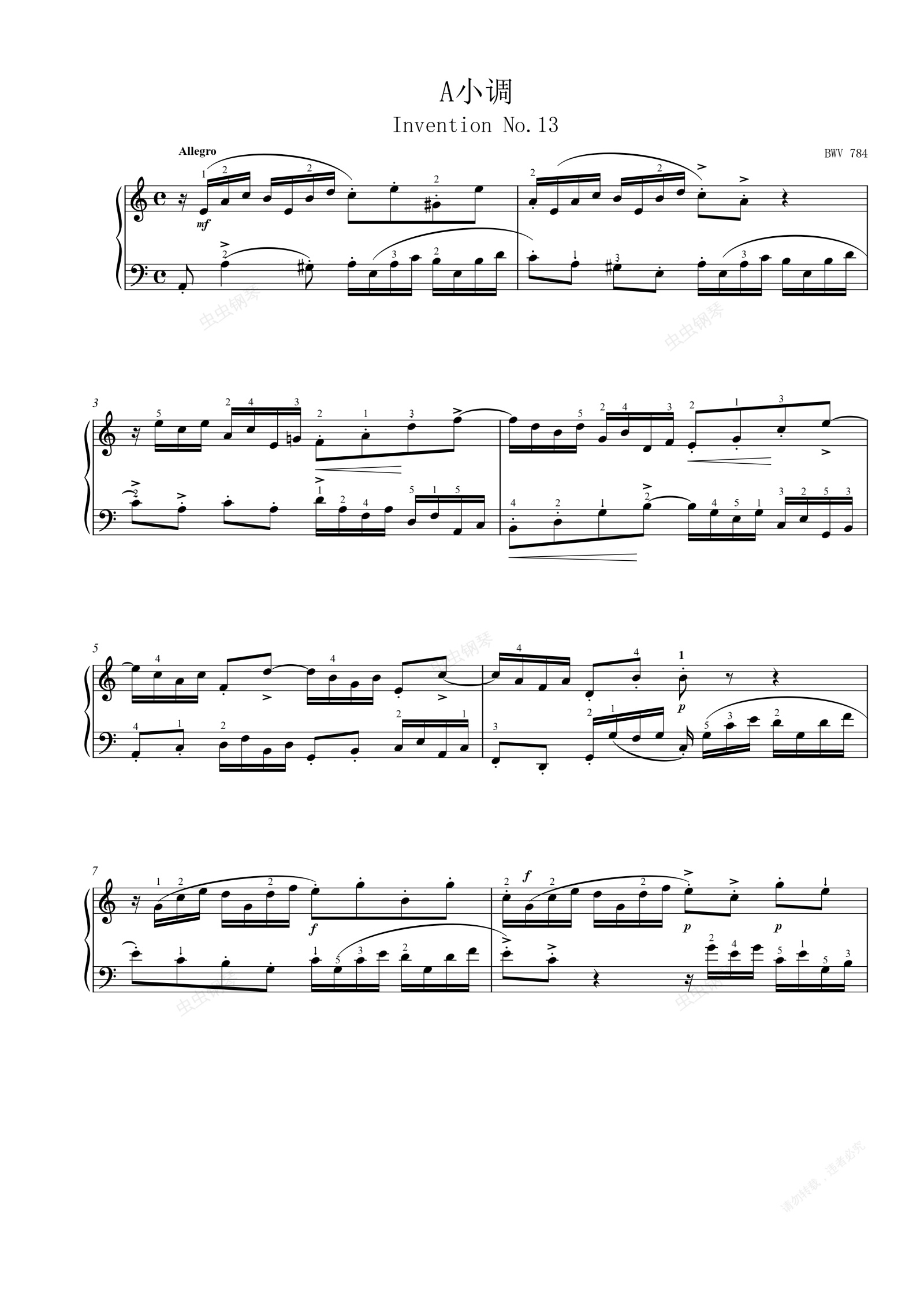 钢琴谱:二部创意曲No.13