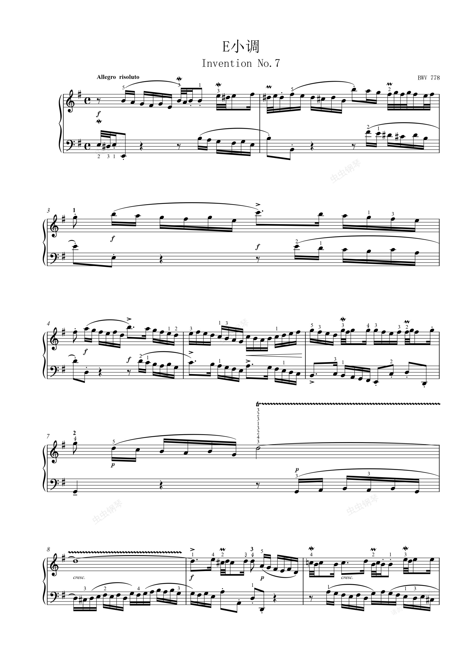 钢琴谱:二部创意曲No.7
