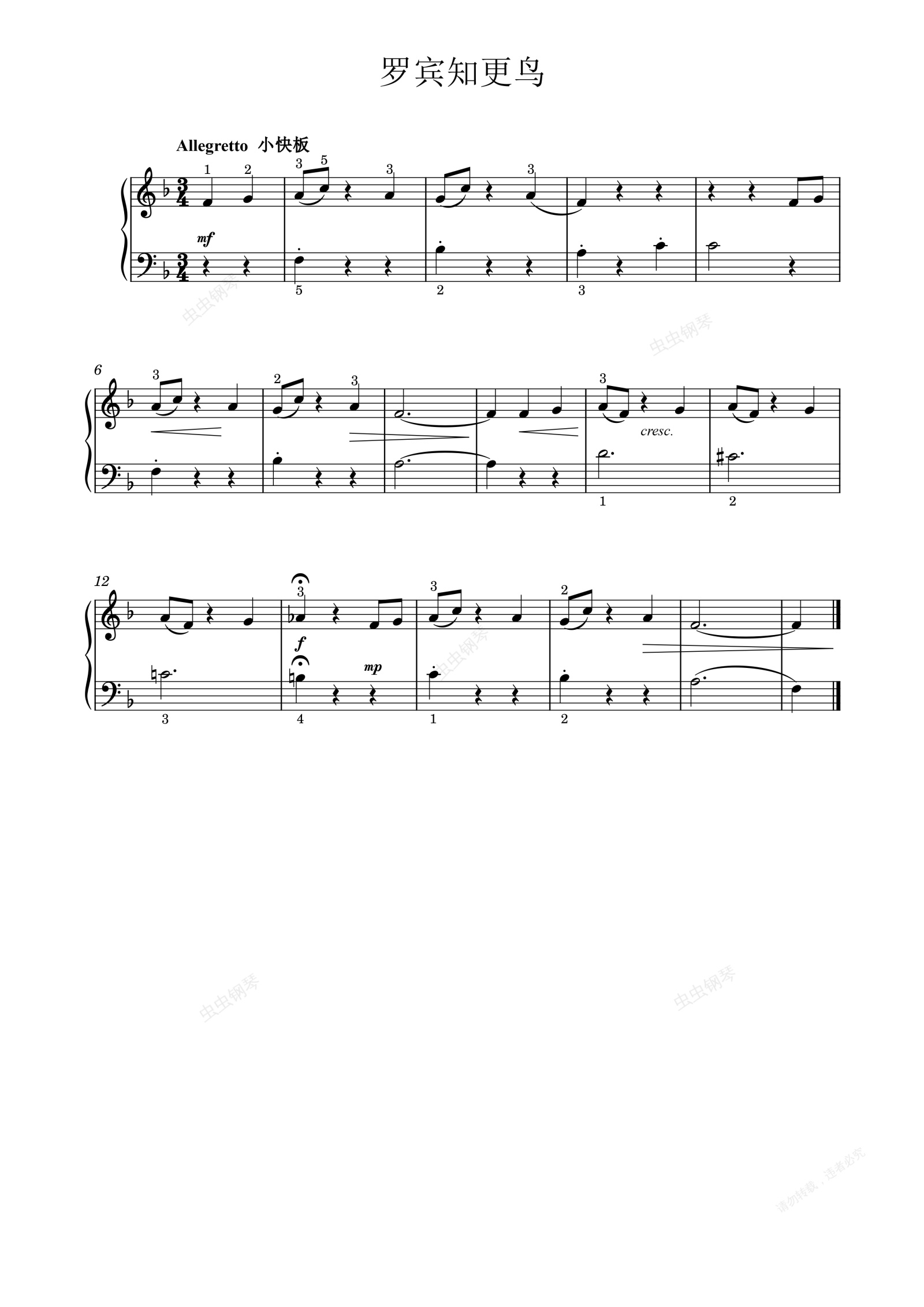 钢琴谱:罗宾知更鸟