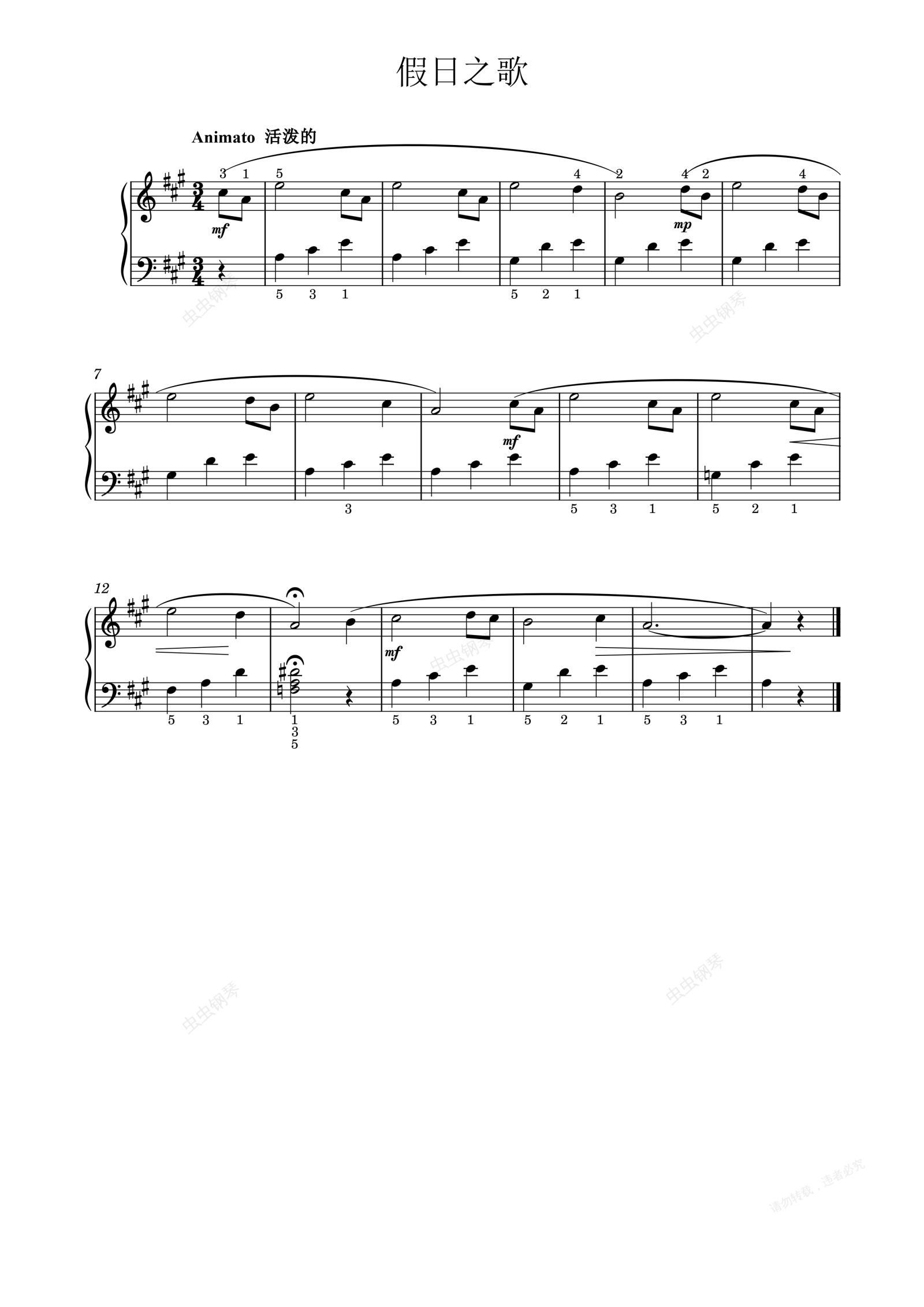 钢琴谱:假日之歌