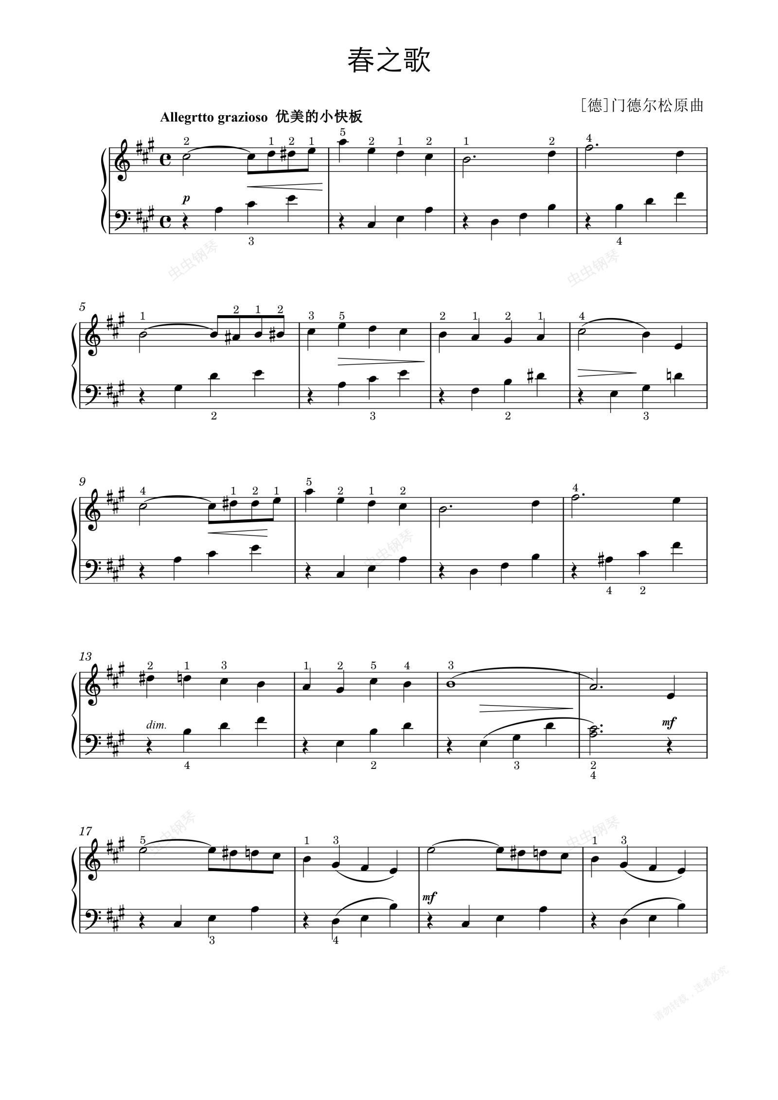 钢琴谱:选自《春之歌》